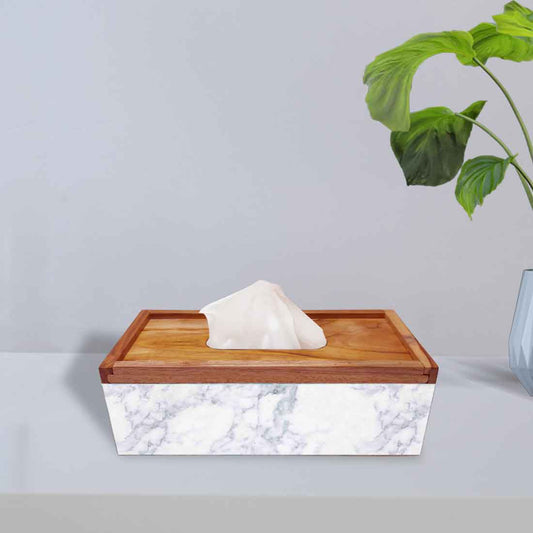 Wooden Tissue Box Cover Holder for Office Car - White Marble