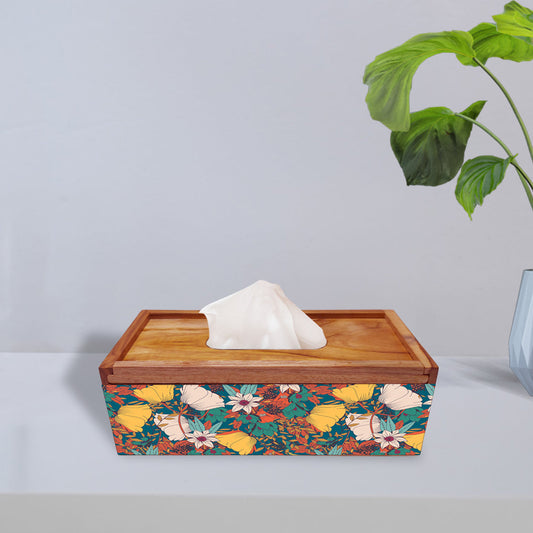 Wooden Rectangular Tissue Holder for Bathroom - Floral