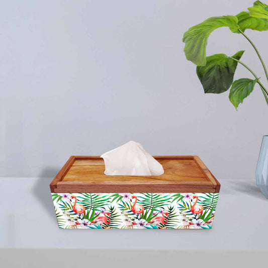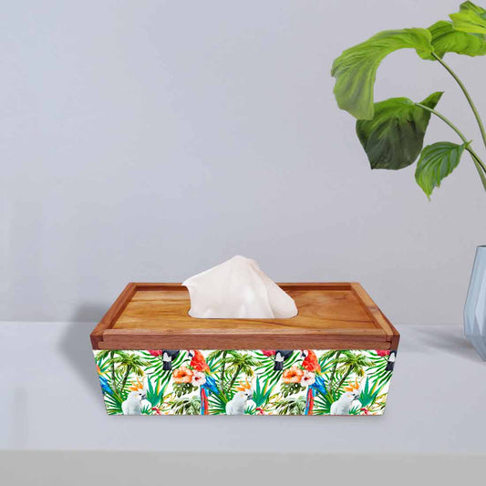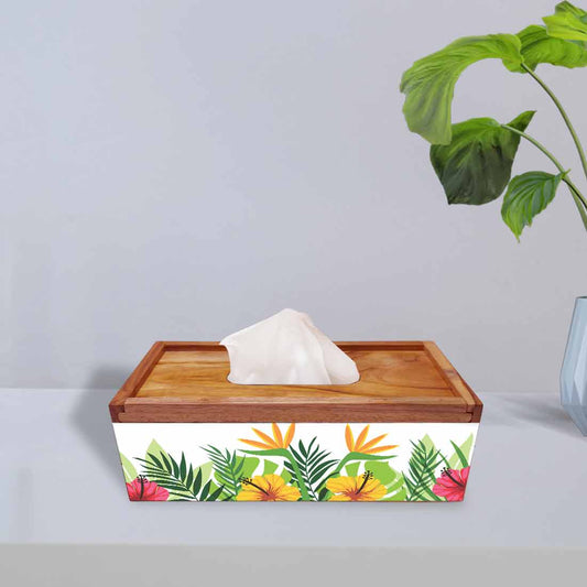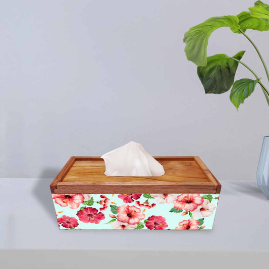 Tissue Paper Holder Box Wooden for Office Home - Hibiscus