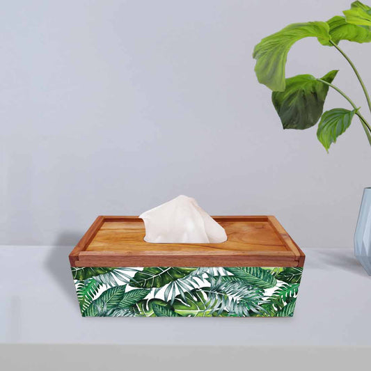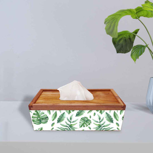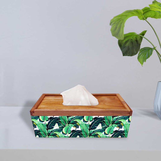 Wooden Rectangular Tissue Holder for Dining Table Kitchen - Banana Leaf