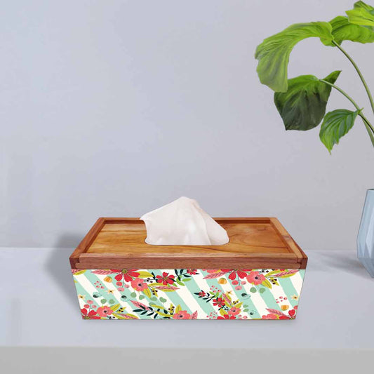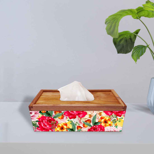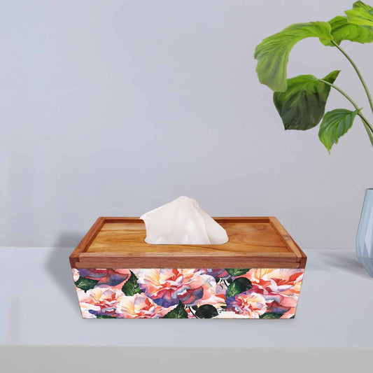 Rectangular Tissue Stand Holder Wooden for Home Office - Flower