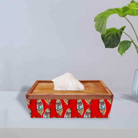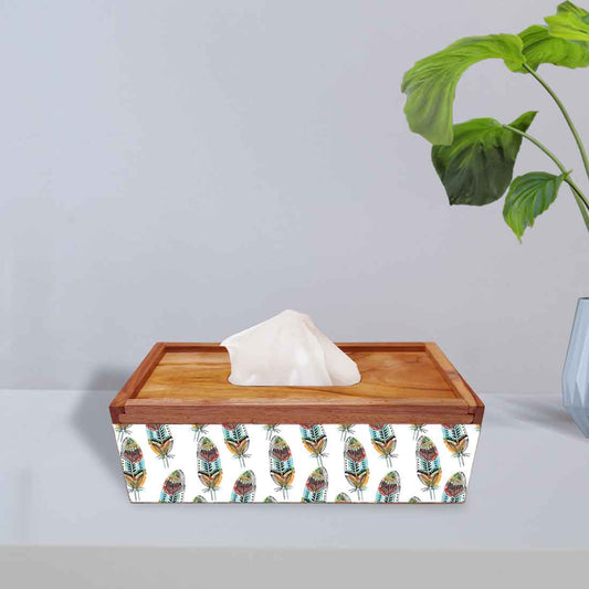 Rectangular Wooden Tissue Holder for Home Office Car - Feather