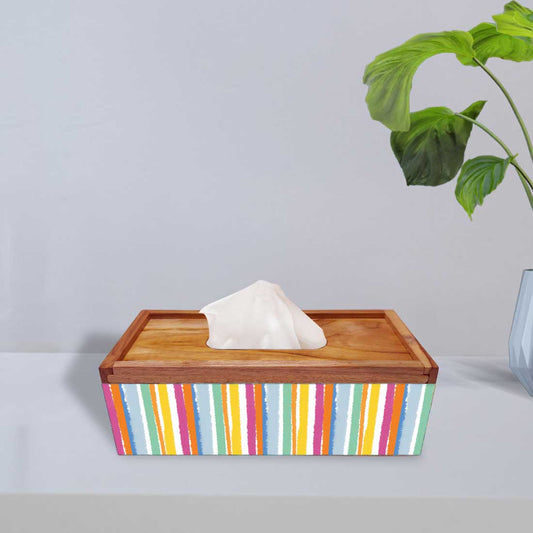 Designer WoodenTissue Box Holder for Car Office - Multicolor Stripe