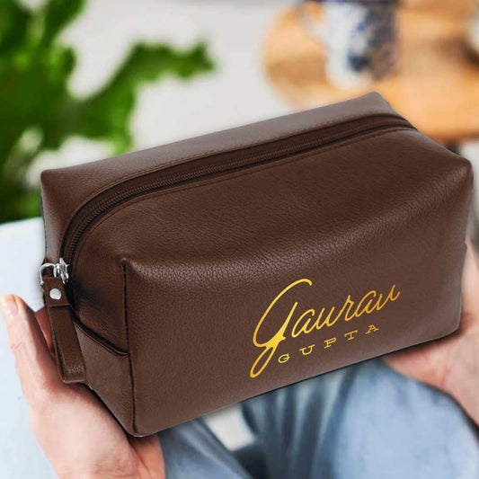 Custom Travelling Pouch for Men - Faux Leather Toiletries Bag