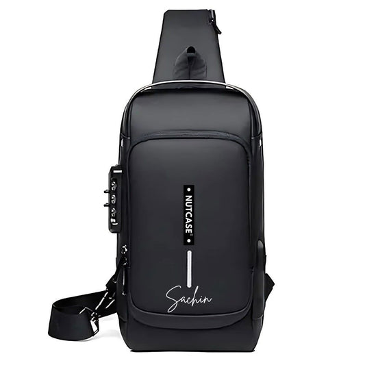 Anti-Theft Sling Bag for Men | Customized Crossbody Side Bag Waterproof Backpack with Built-in Lock & USB Charging Port