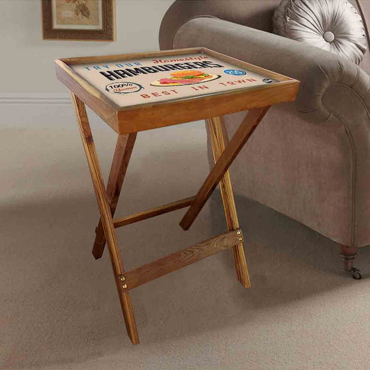 Folding Tray Table for Living Room Serving Snacks Tables - Cute Burgers