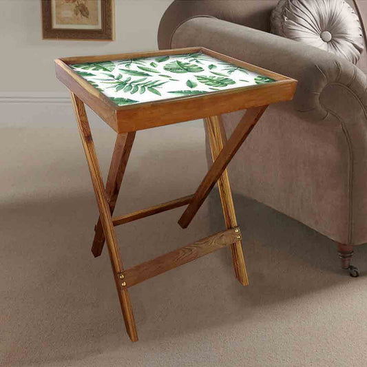 Foldable TV Trays Table Bar Snacks Serving Tables - Green Leaves