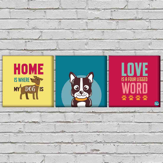 Wall Art Decor Hanging Panels Set Of 3 -Home Is Where My Dog Is