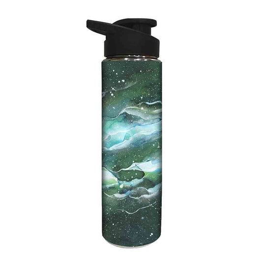 Designer Stainless Steel Sipper Bottle - Arctic Space Sky Blue and Green Watercolor