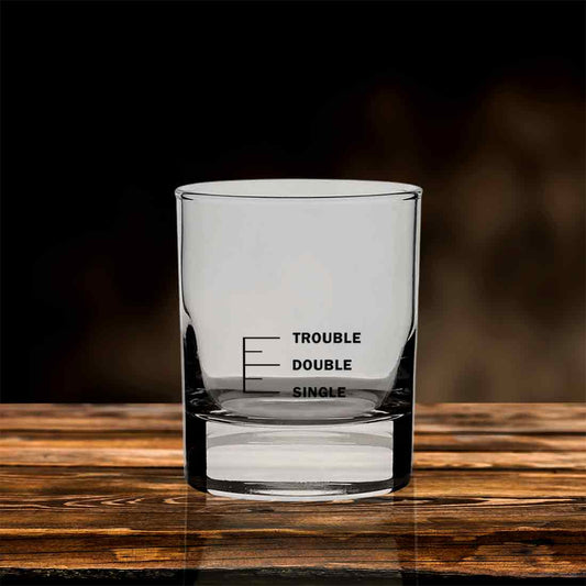 Unique Whiskey Glass with Measurement Peg - SINGLE DOUBLE TROUBLE