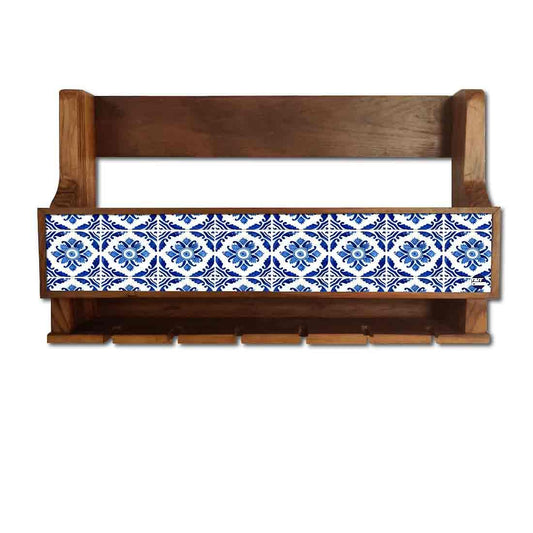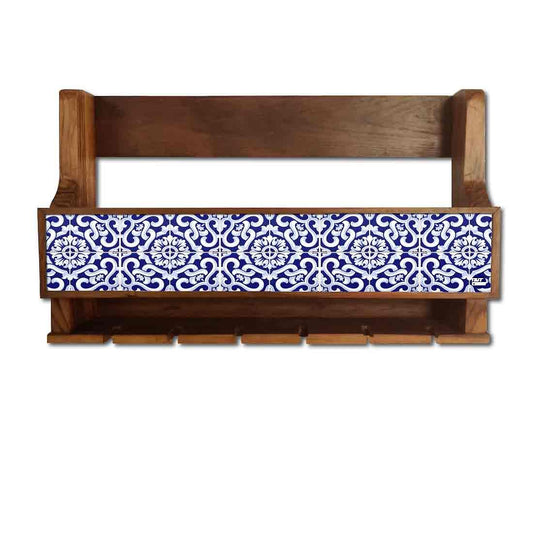 Wall Mounted Wooden Wine Cabinet for Living Room 5 Bottles 6 Glasses - Spanish Tiles