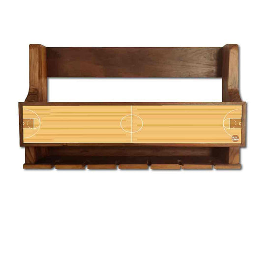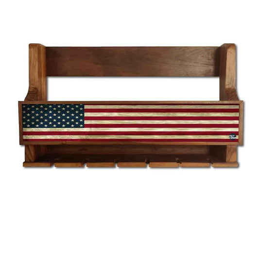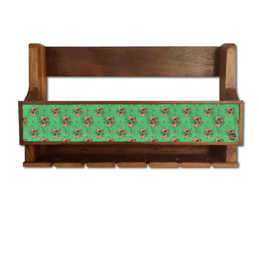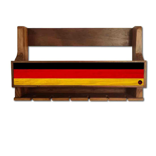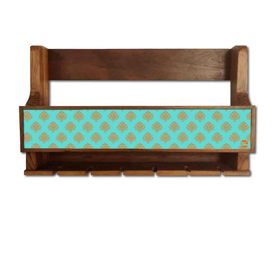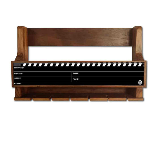 Nutcase Designer Wooden Wine Rack Gloss Holder, Teak Wood Wall Mounted Wine Cabinet , 5 bottle Hangers for 6 Wine Glasses -