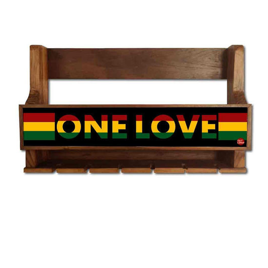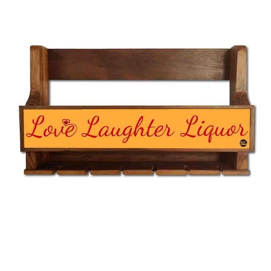 Wall Mounted Wine Glass Holder Stand for Living Room 5 Bottles 6 Glasses - One Love