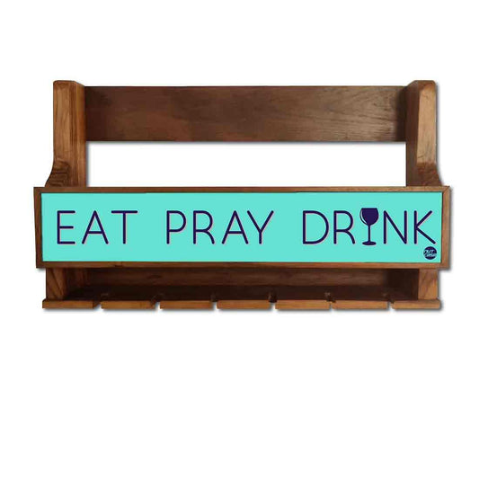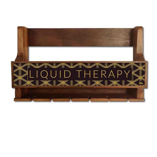 Nutcase Designer Wooden Wine Rack Gloss Holder, Teak Wood Wall Mounted Wine Cabinet , 5 bottle Hangers for 6 Wine Glasses -