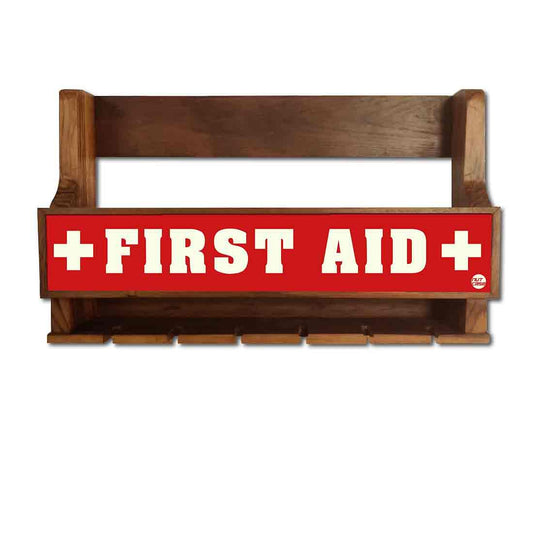 Wall Mounted Wooden Wine Rack Glass Holder Mini Bar for 5 Bottles 6 Glasses - First Aid