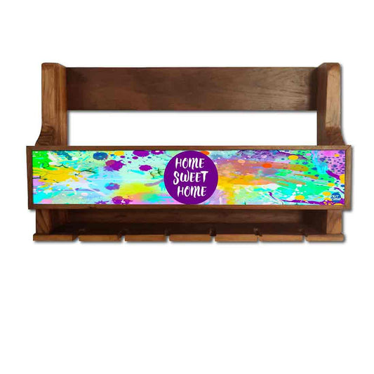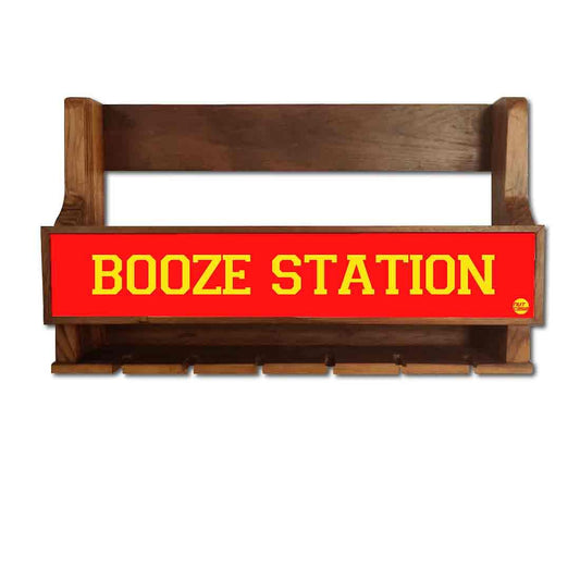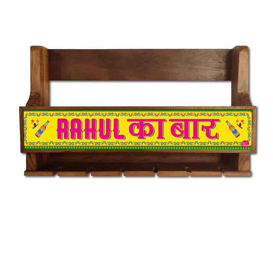Designer Wooden Wall Wine Bottle Holder for Living Room 5 Bottles 6 Glasses - Sweet Home