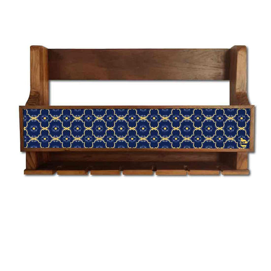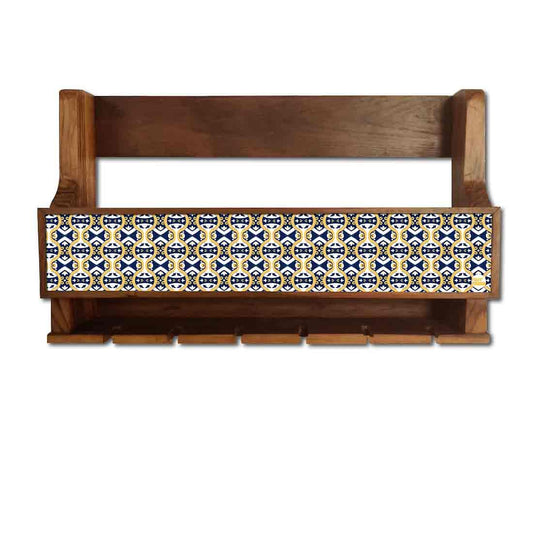 Designer Wooden Wall Mounted Wine Glass Rack Holder for 5 Bottles 6 Glasses - Spanish