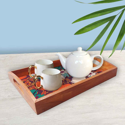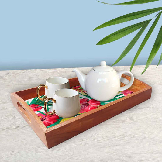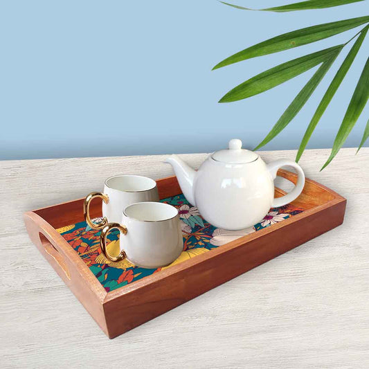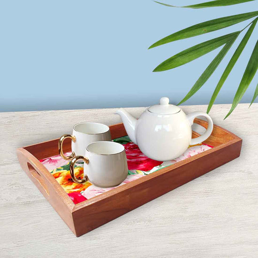 Wooden Serving Tray Platter for Home and Kitchen Use - Flower
