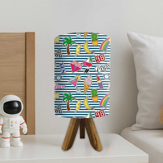Light Wood Table Lamp For Bedroom-Multicolor Lines (3W LED Bulb Included)