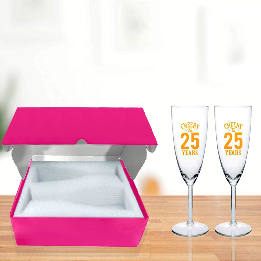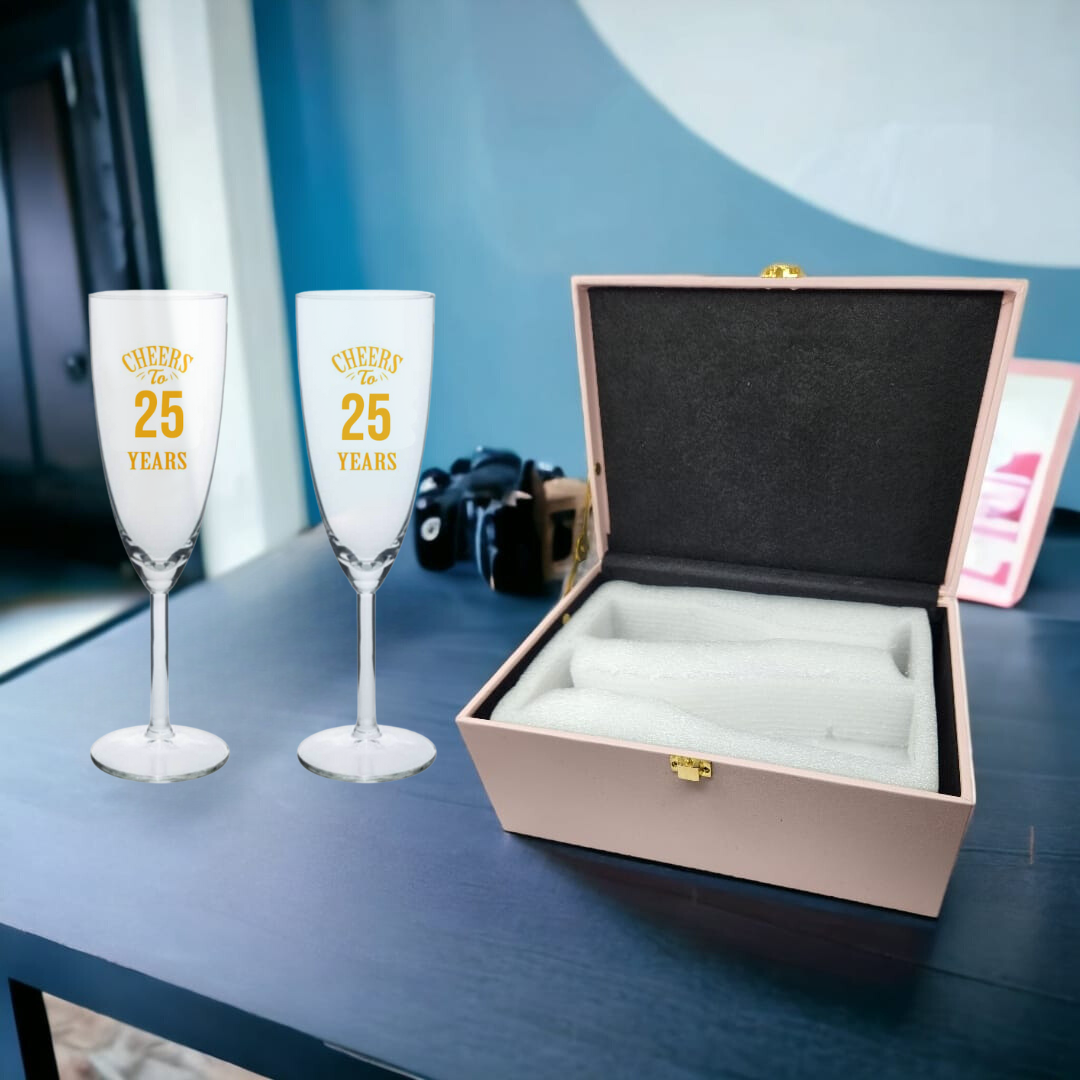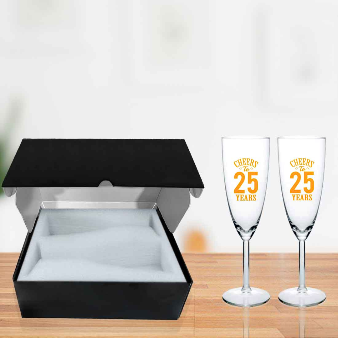 25th Anniversary Gifts for Couples with Champagne Glass Set - Available in Black