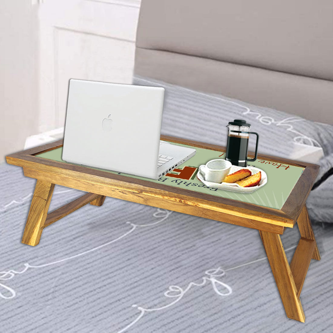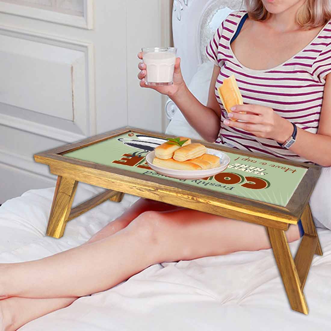 Wooden Folding Bed Table for Breakfast - Coffee Love