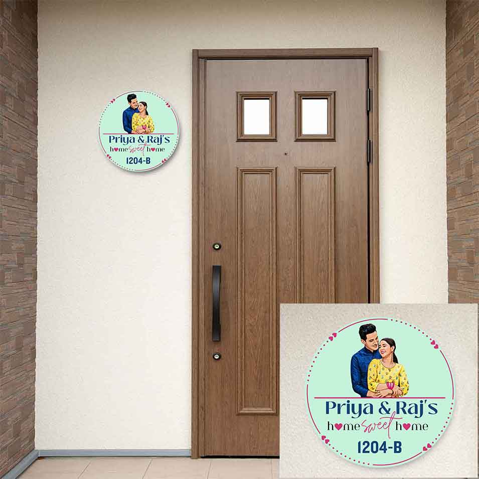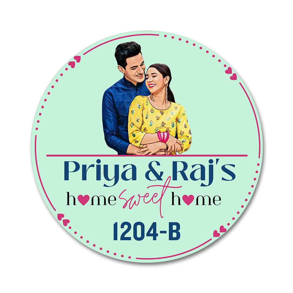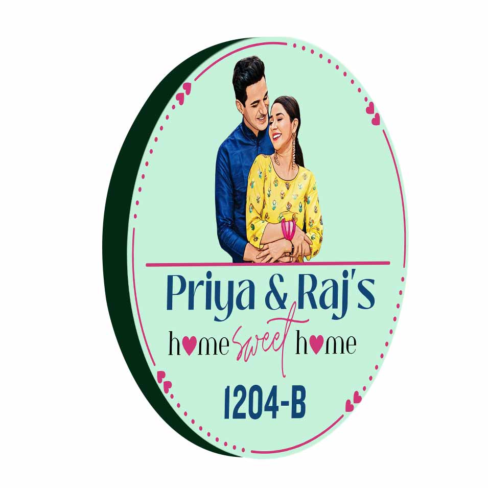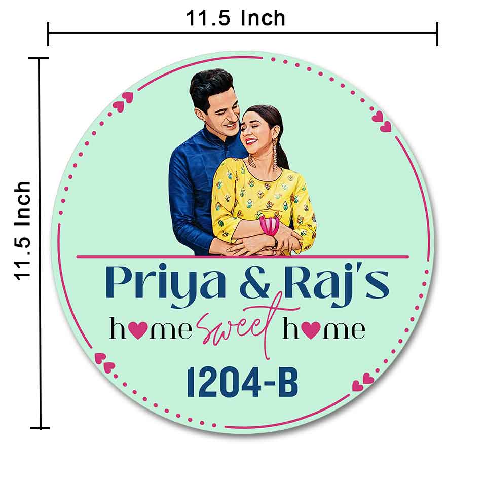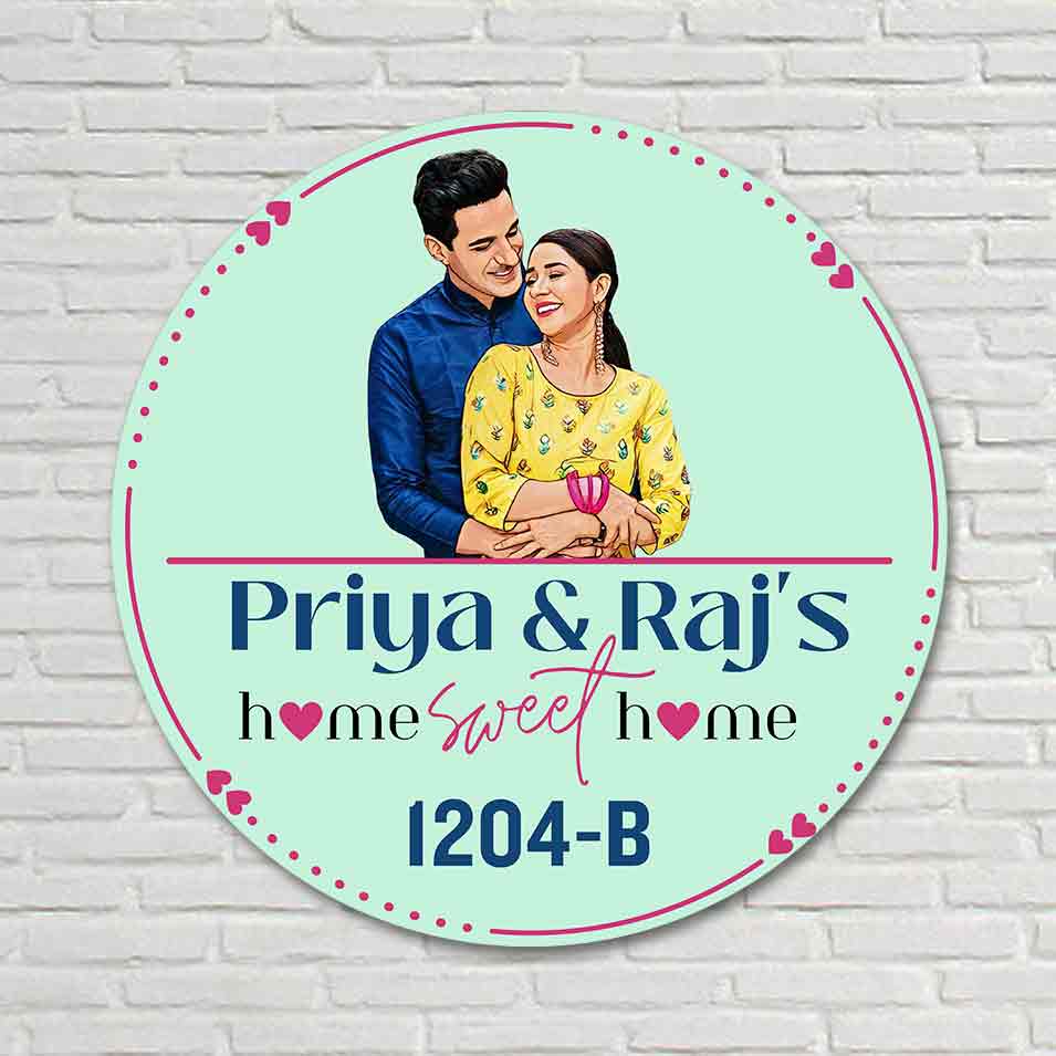 Caricature Couple Name Plate for Home Round Indoor Outdoor Nameplate