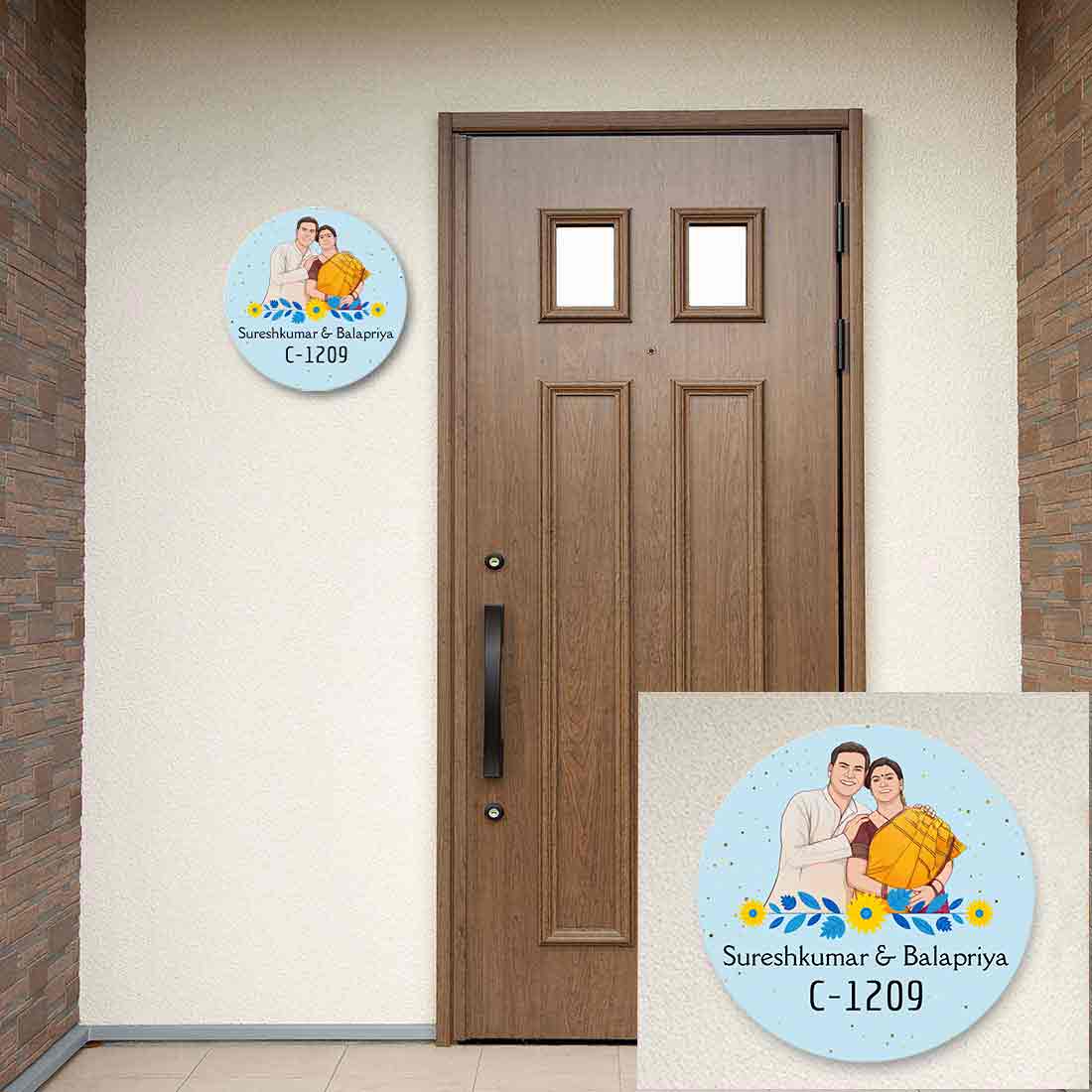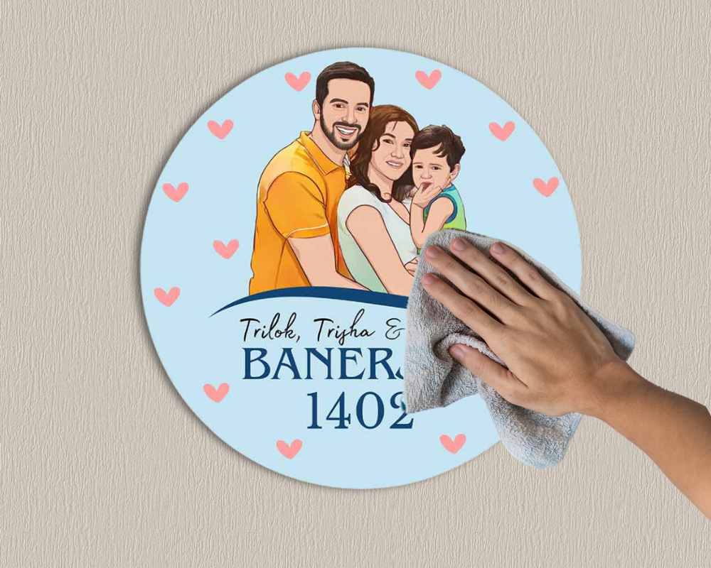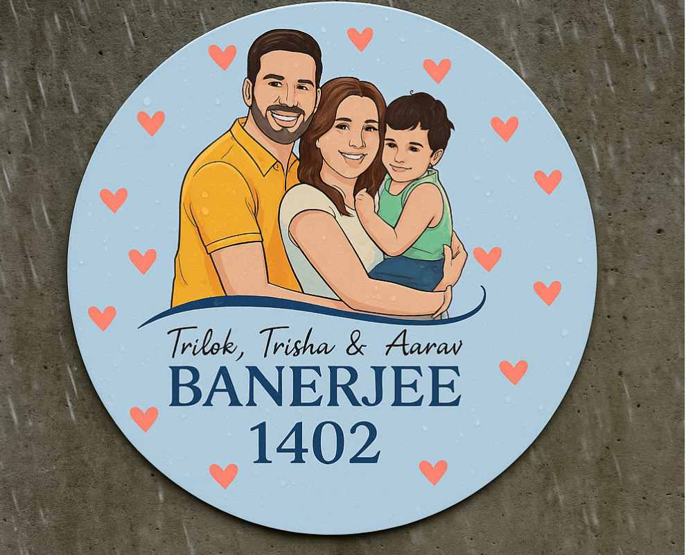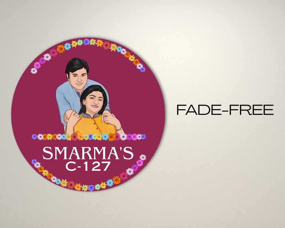 Add a charming, personalized touch to your home entrance with the Nutcase Round Name Plate. Featuring an adorable caricature and vibrant design, this round nameplate is a heartwarming symbol of love and togetherness. Crafted from high-quality marine-grade particle board, it’s perfect for both flats and bungalows. Simply click ‘Personalize It’ to upload a high-resolution photo to create a custom caricature that captures you both beautifully.