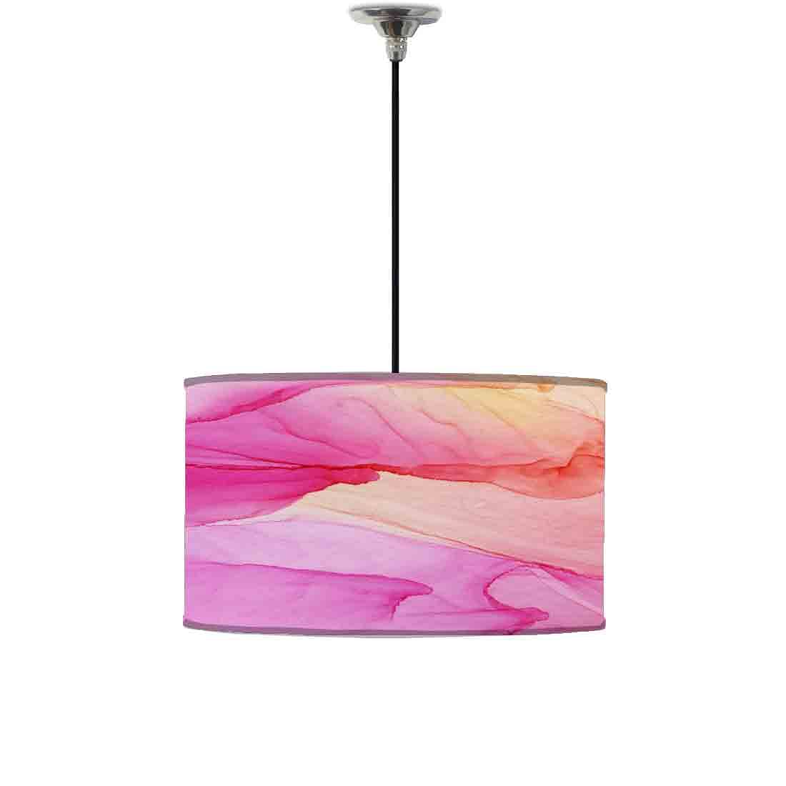 Ceiling Lamp Hanging Drum Lampshade - Pink Yellow Ink Watercolor