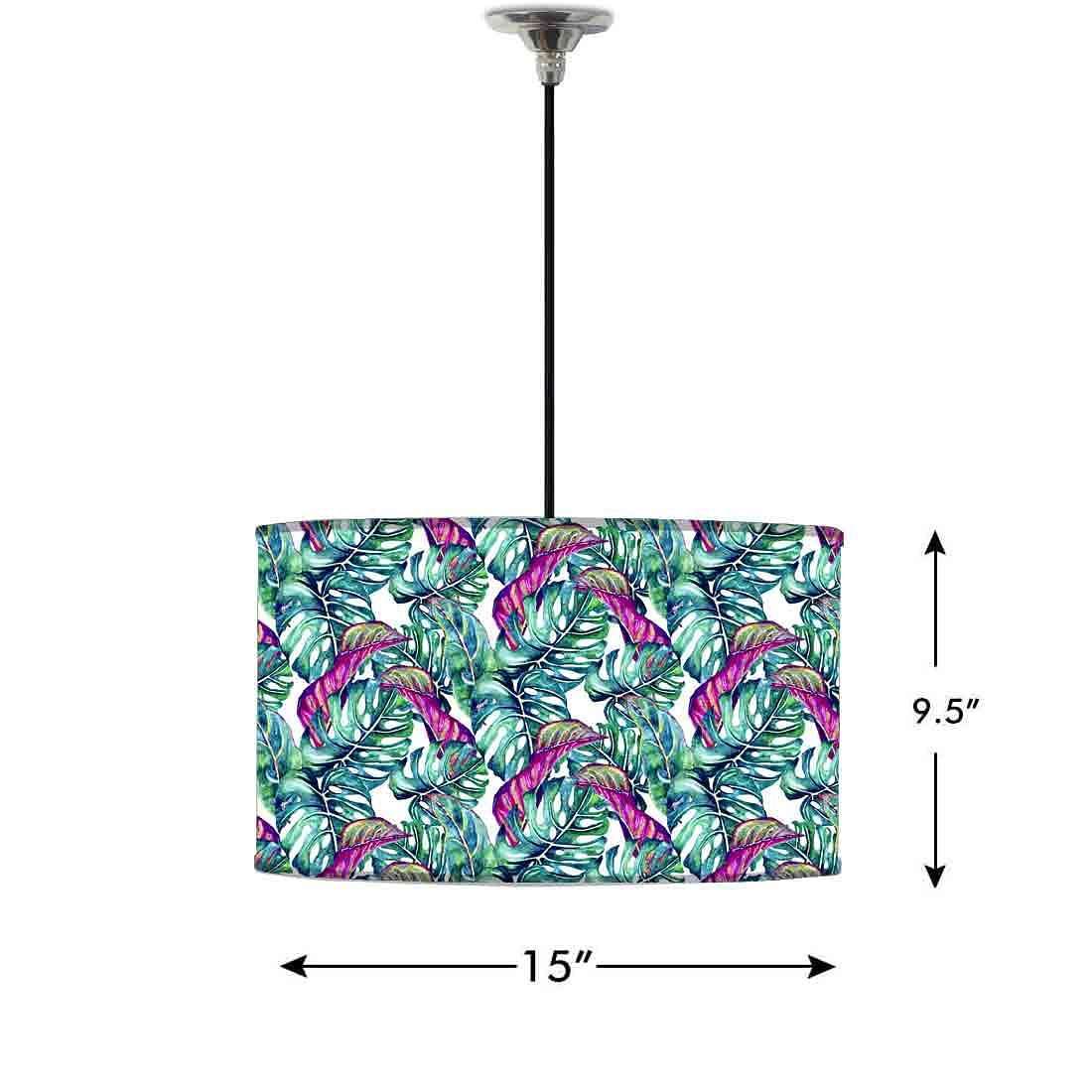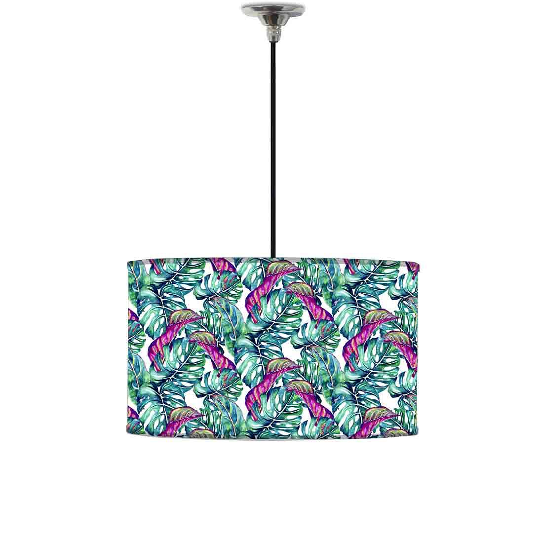 Ceiling Lamp Hanging Drum Lampshade - Monstera Tropical Leaf