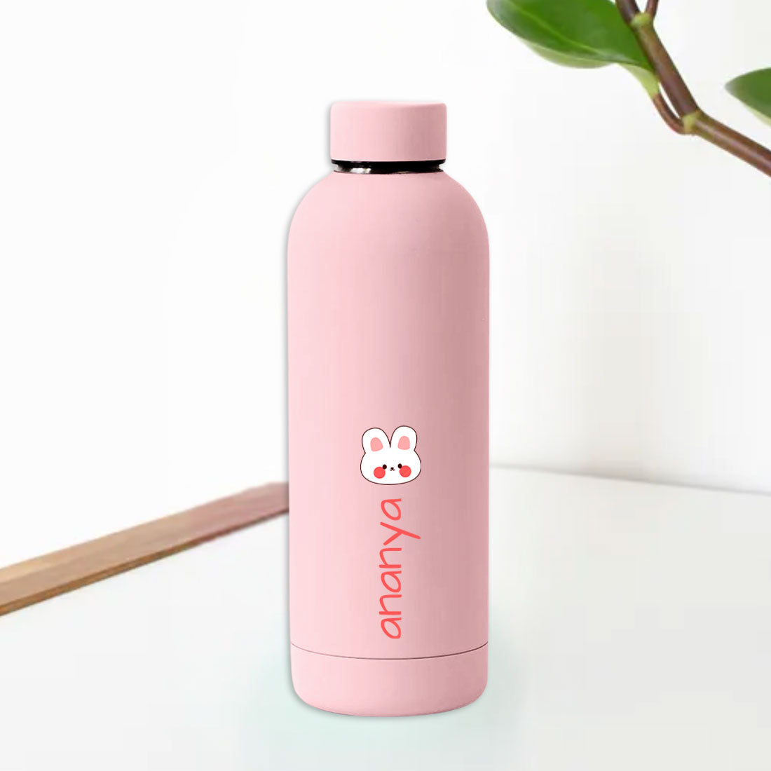 Childrens Personalised Water Bottle with Name-Double Insulated Bottle for Travel, Shool, Home - BPA Free, Leakproof - Rabbit Design
