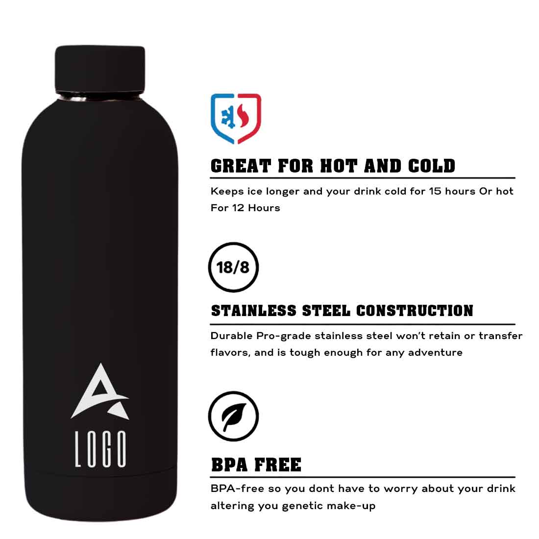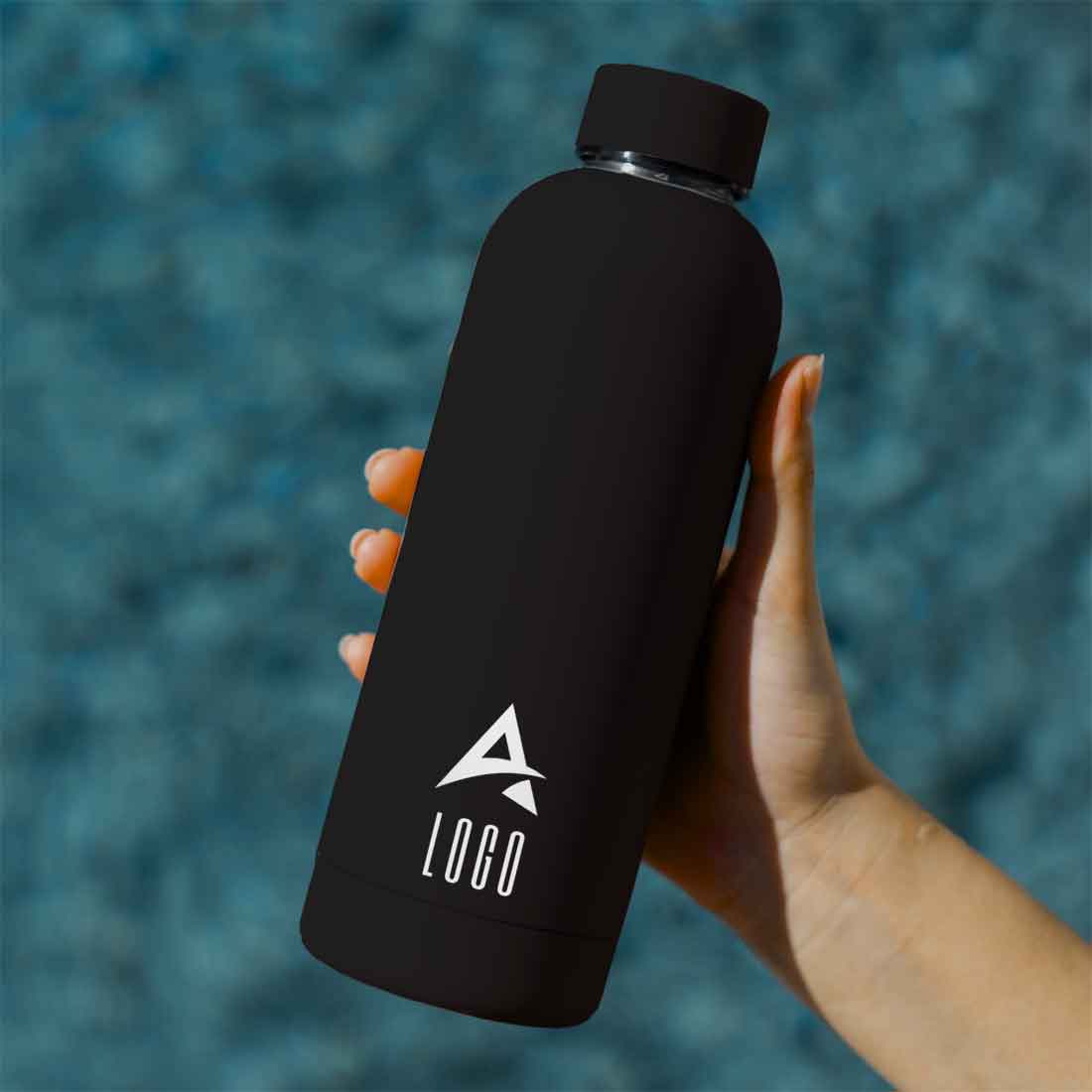 Need company logo on bottle? Nutcase Custom Bottles are stylish and sturdy. These 500ml double-insulated stainless steel personalized bottles feature a luxurious finish, are BPA-free, leakproof, and designed to keep your beverages hot or cold for extended periods