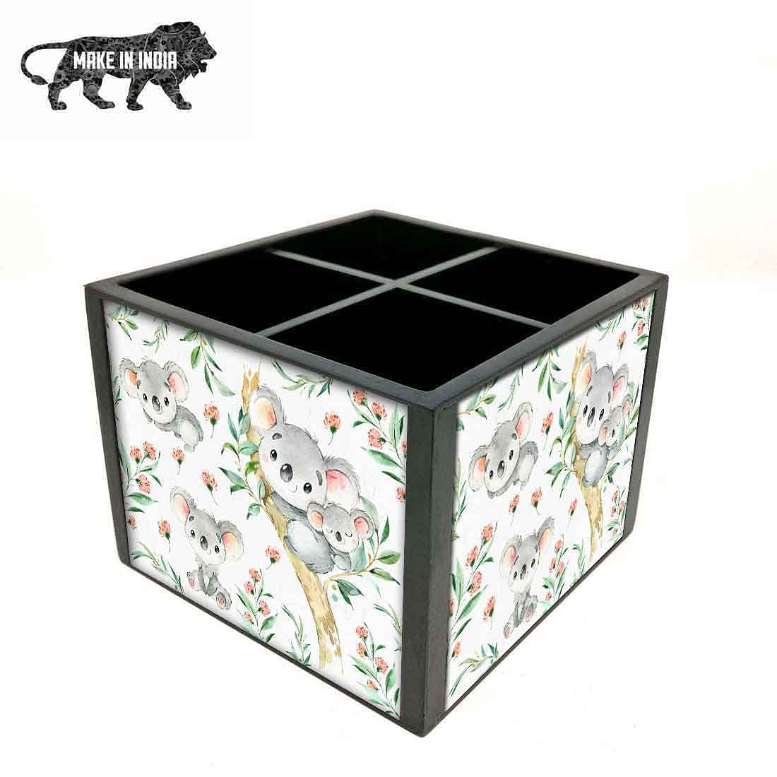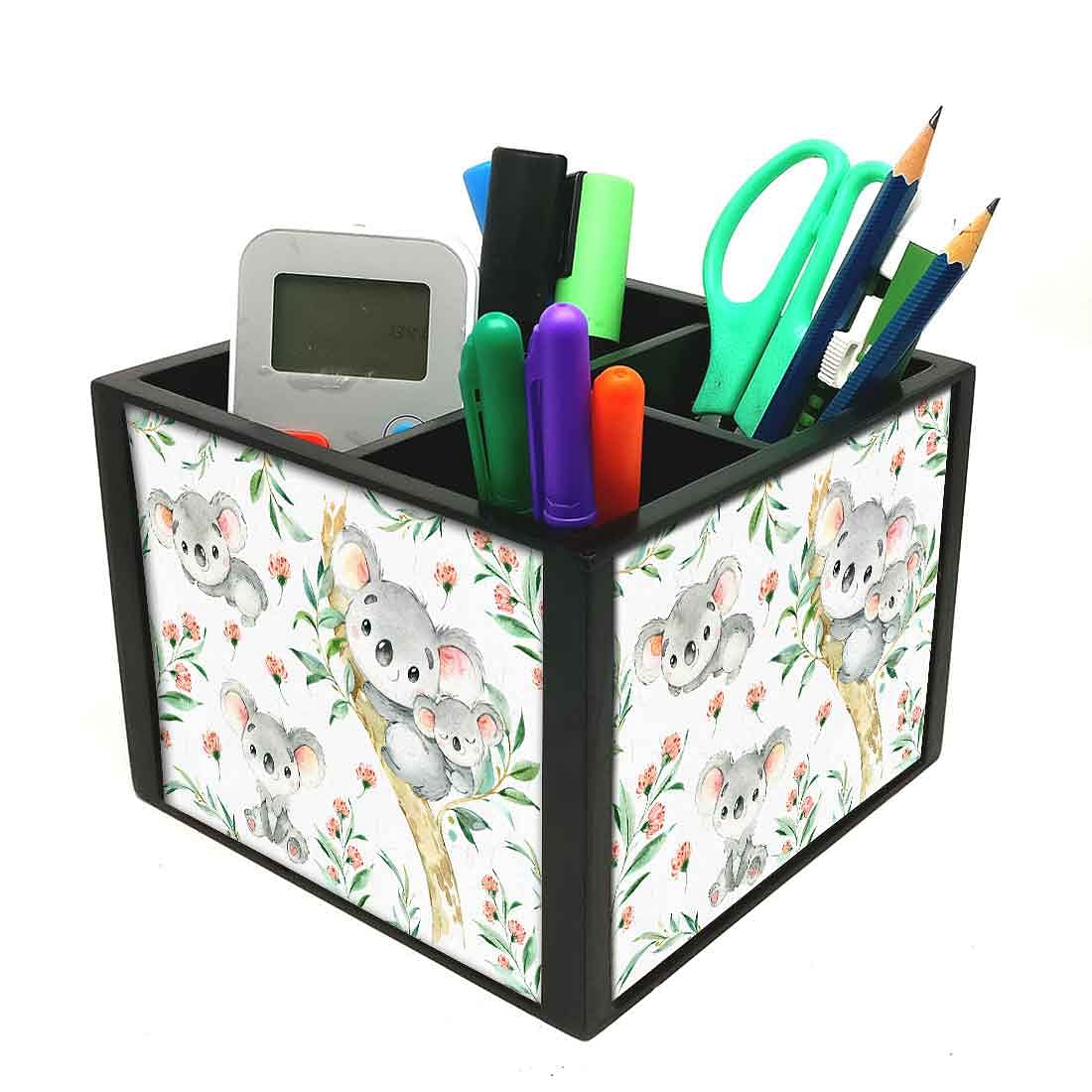 Nutcase 4 Slot Office Wooden Desktop Storage Holder Stand for Pen/Pencil/TV Remote Control/Stationery/Mobile Phone - Cute Koala