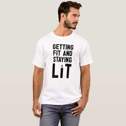 Nutcase Designer Round Neck Men's T-Shirt Wrinkle-Free Poly Cotton Tees - Getting Fit