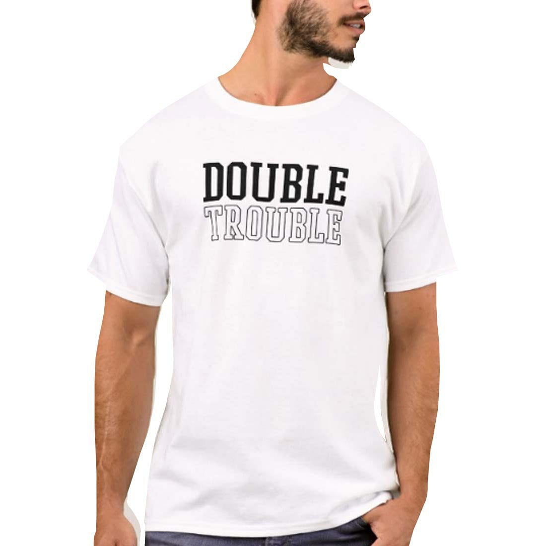 Nutcase Designer Round Neck Men's T-Shirt Wrinkle-Free Poly Cotton Tees - Double Trouble