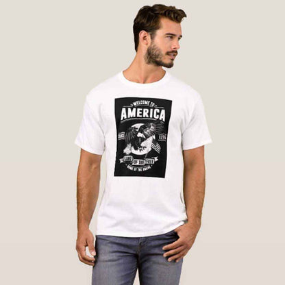 Nutcase Designer Round Neck Men's T-Shirt Wrinkle-Free Poly Cotton Tees - Welcome to America