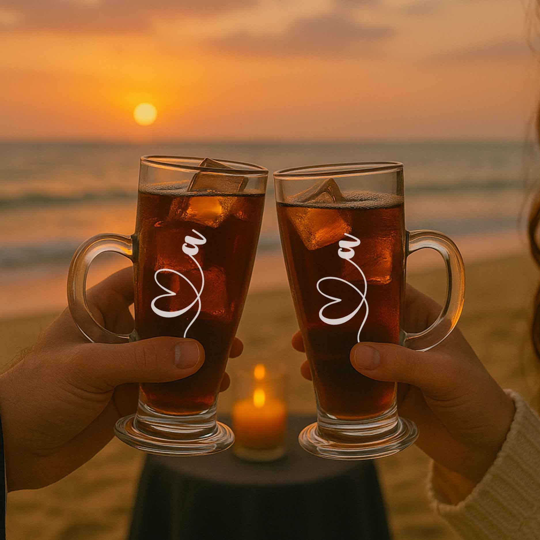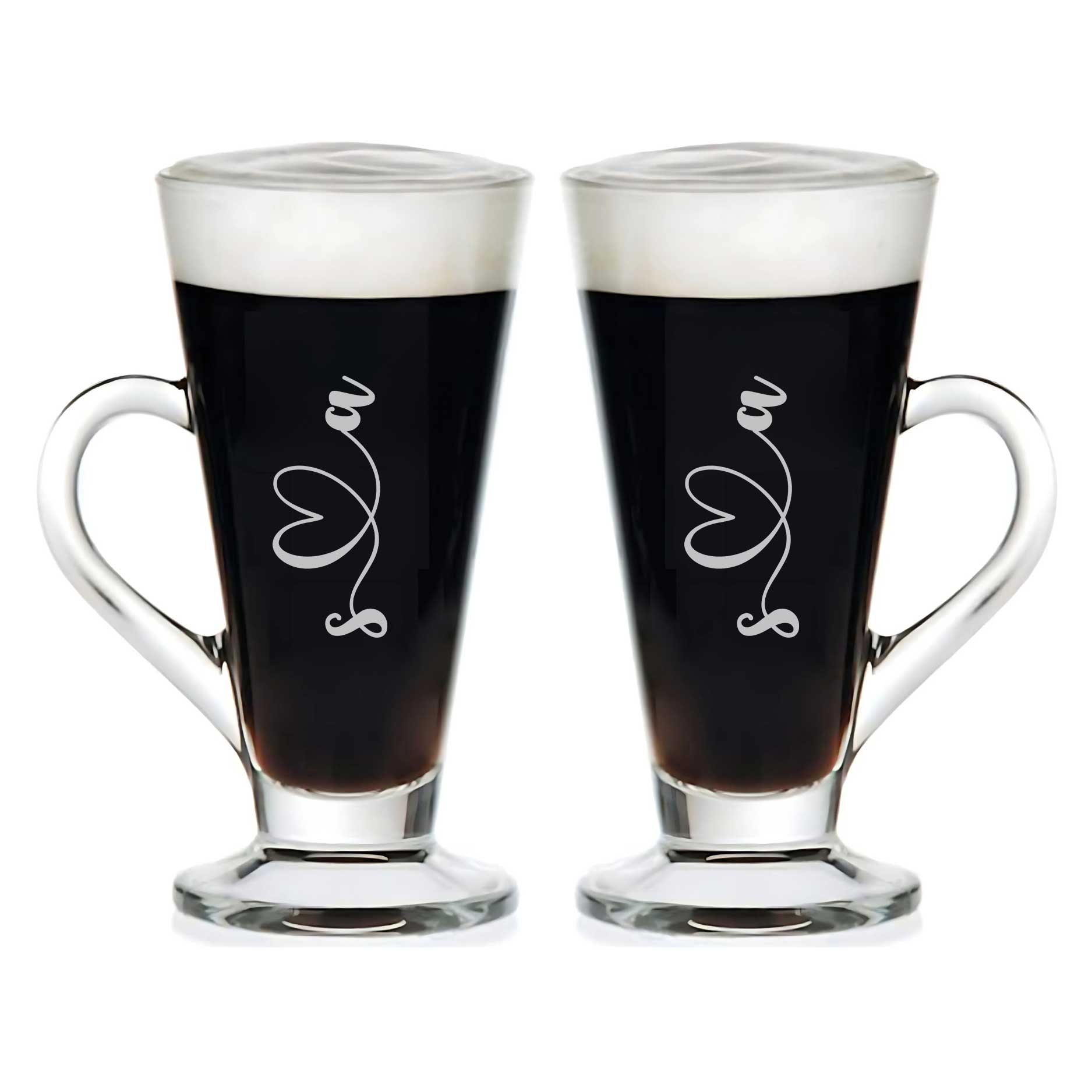 Couples Coffee Mugs Customised Coffee Cups Tall Latte, Cappuccino, Hot Chocolate Glass - Set of 2