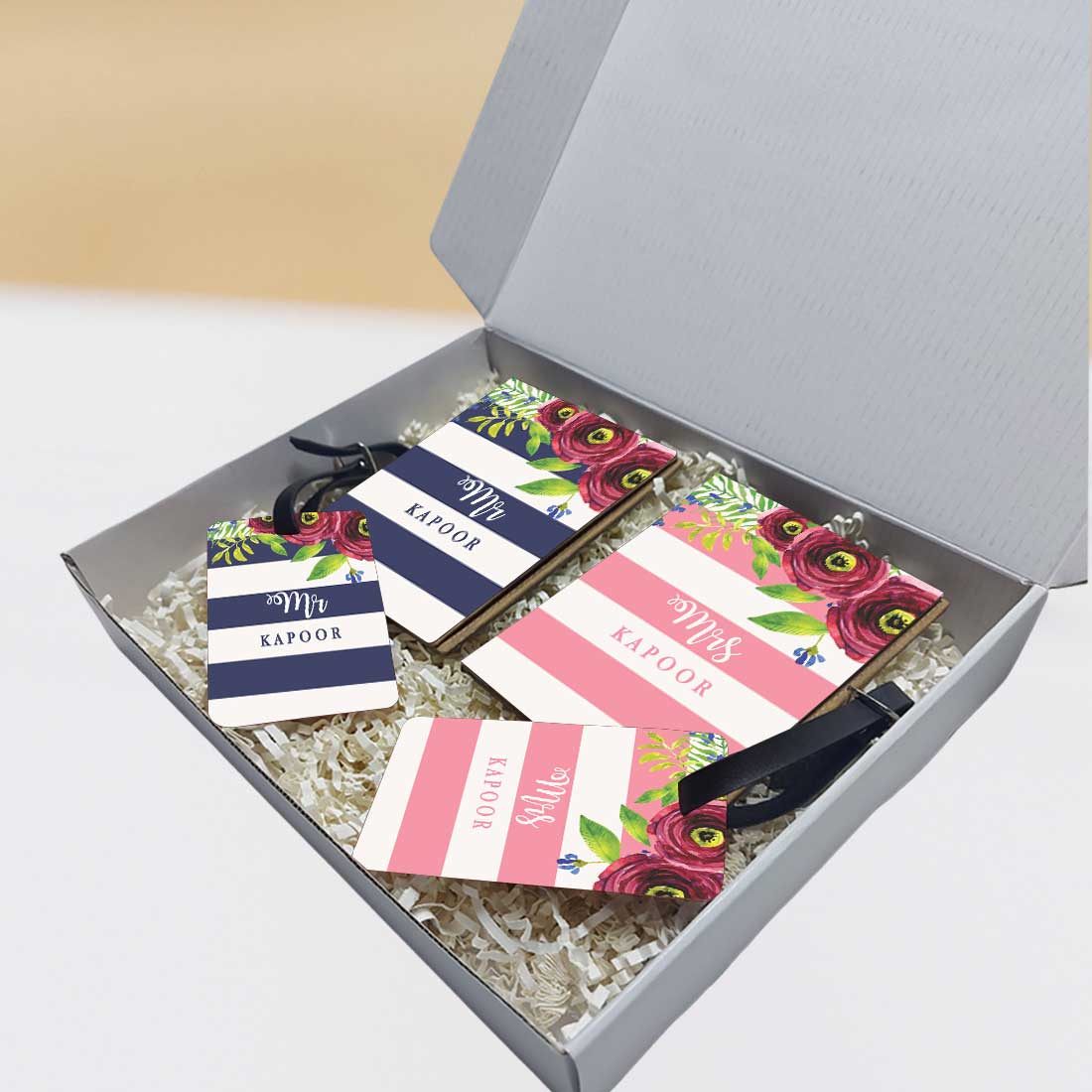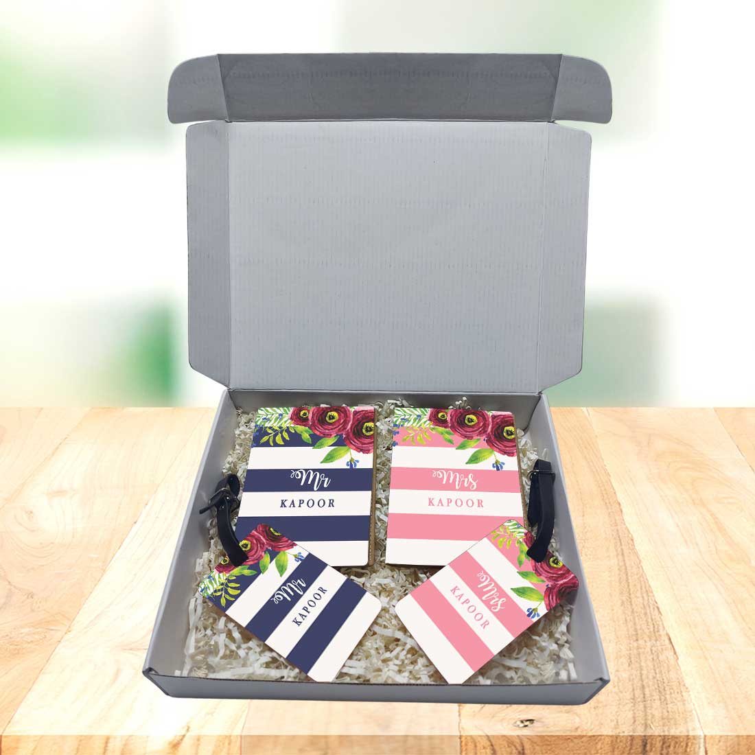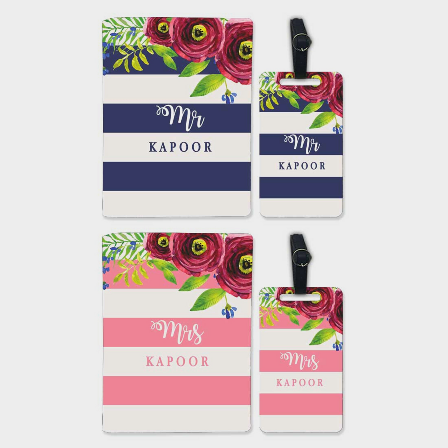Personalize Couples Mr & Mrs Passport Cover with Luggage Tag Gift Set