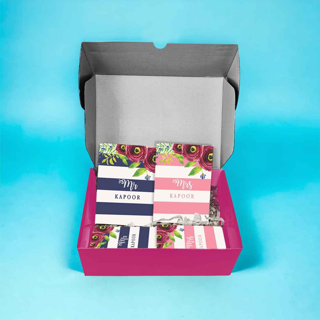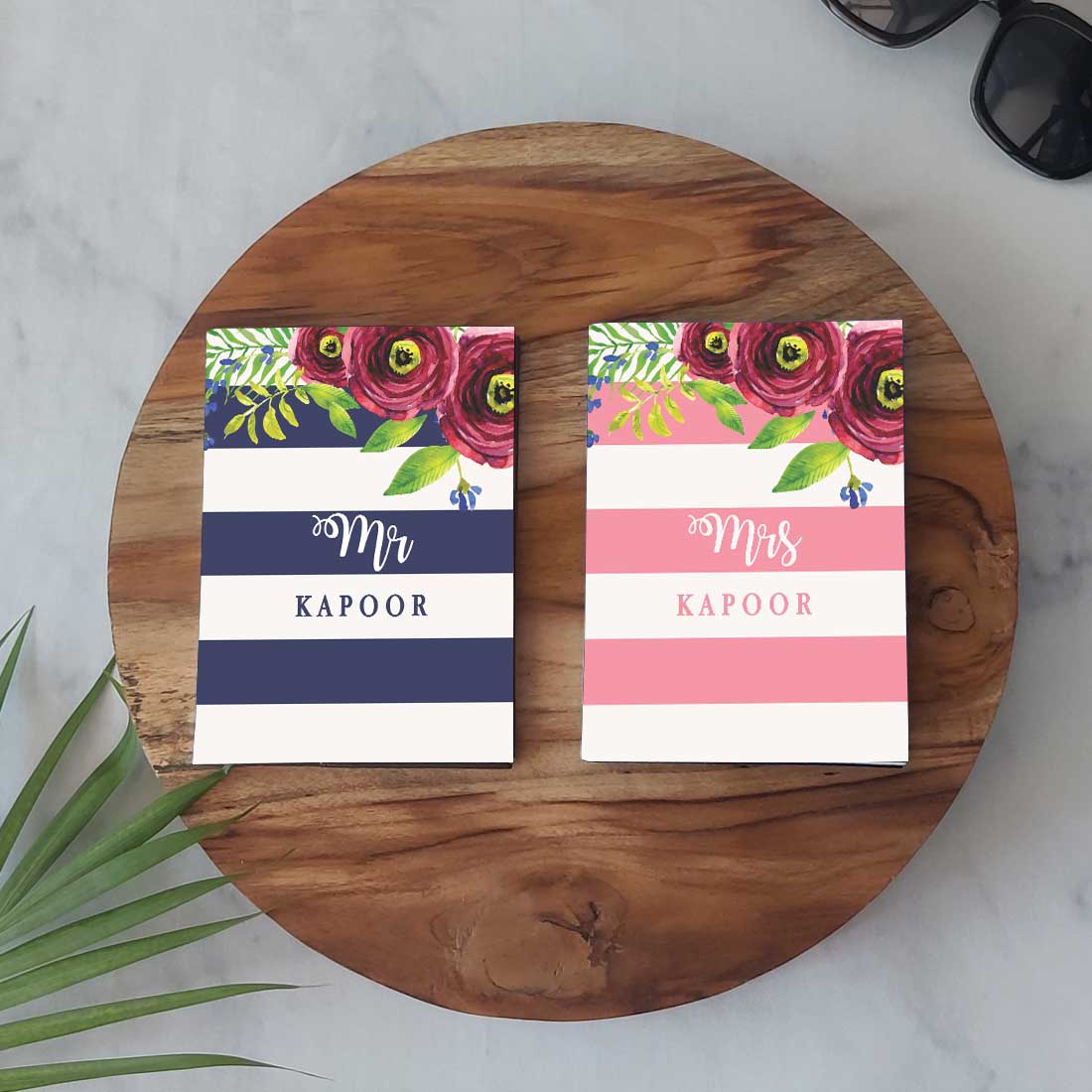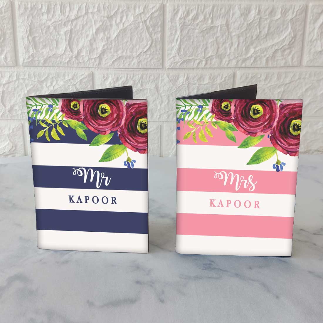 Personalize Couples Mr & Mrs Passport Cover with Luggage Tag Gift Set