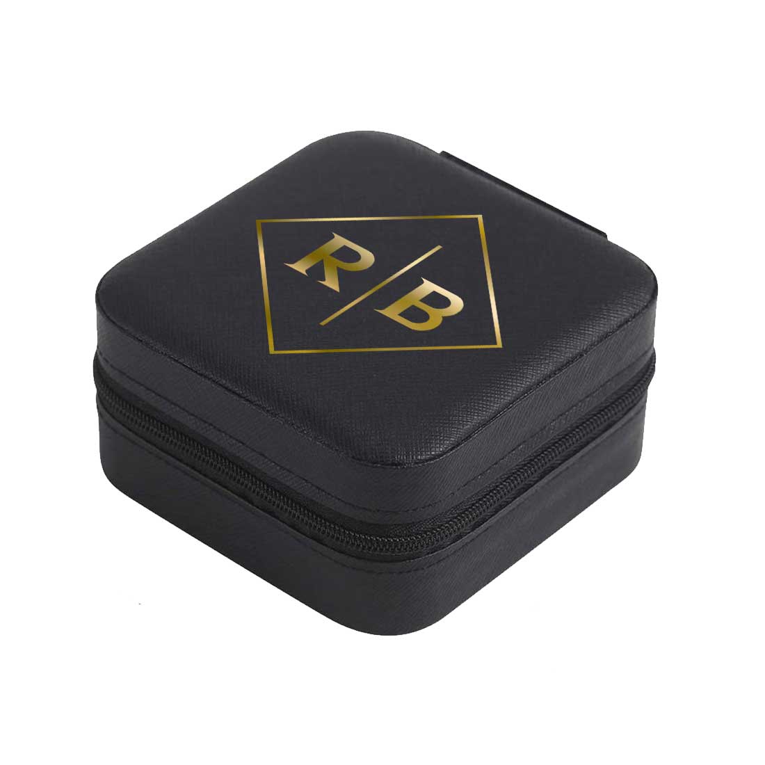 Introducing the mini Travel Jewellery Case made with luxurious PU canvas leather. Available in both pink and black, this stylish box is perfect for storing your precious accessories. Personalize it with golden fonts to add a touch of elegance. Surprise your girlfriend this Valentine's Day with this thoughtful and practical gift.