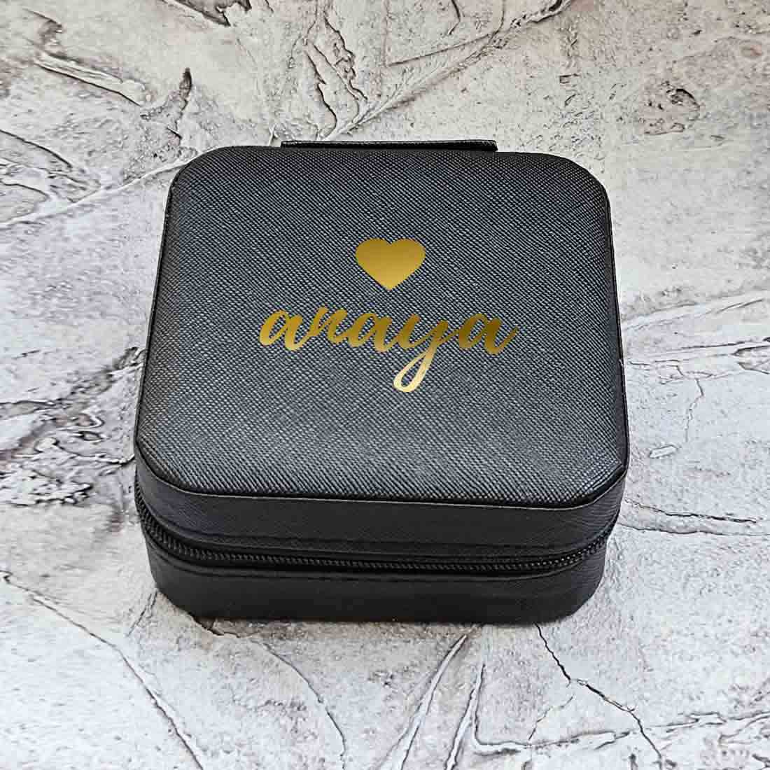 Introducing the mini Jewellery Organiser made with luxurious PU canvas leather. Available in both pink and black, this stylish box is perfect for storing your precious accessories. Personalize it with golden fonts to add a touch of elegance. Surprise your girlfriend this Valentine's Day with this thoughtful and practical gift.