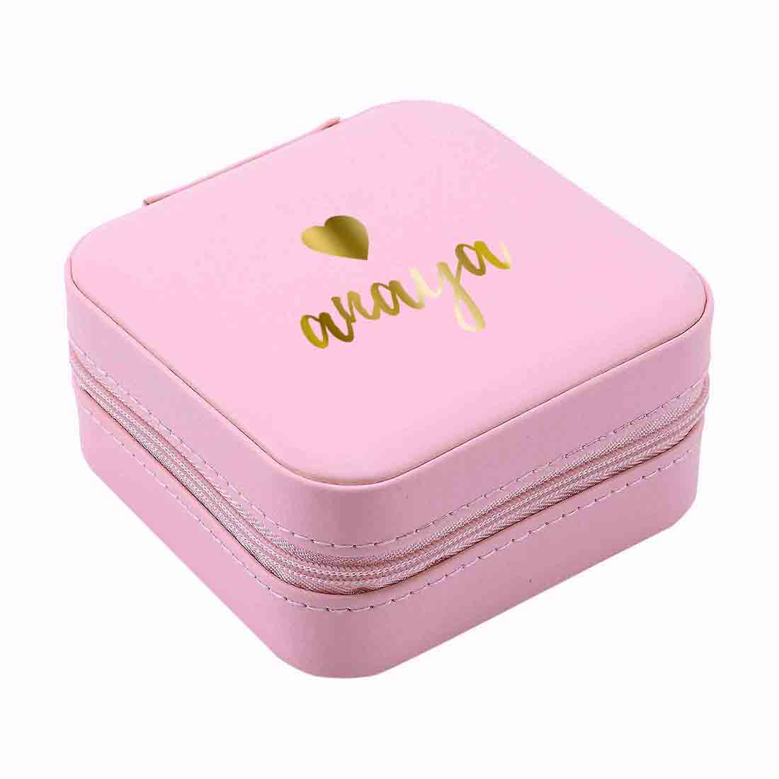 Custom Jewellery Organiser PU Leather Zipper Portable Storage Box with Dividers Container for Rings Earrings
