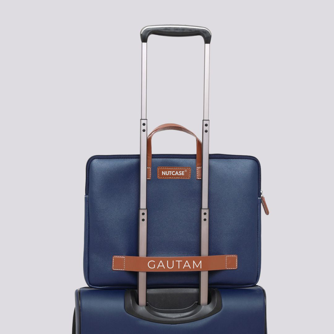 This elegant laptop sleeve features a built-in strap that slides over your carry-on handle, keeping it secure and stylish on the go.