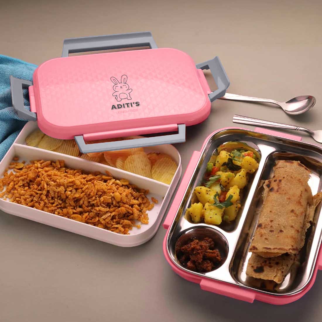 Custom Lunch Box with Name - Pink Stainless Steel Tiffin Box