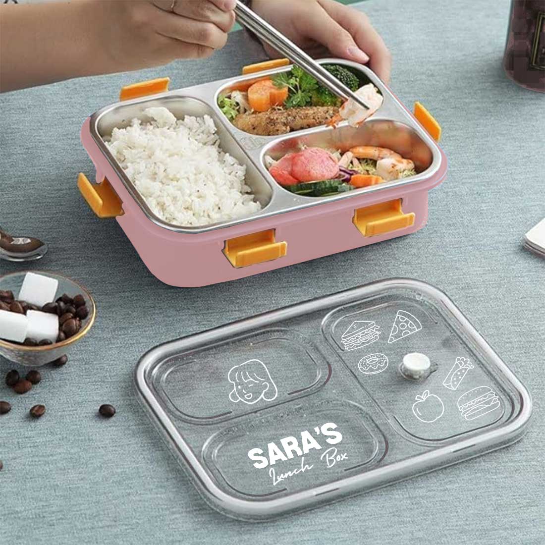 Custom Lunch Box with Name Stainless Steel Leak Proof Tiffin