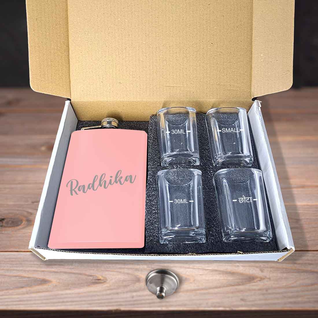 - 8 OZ (250 ml) Personalised Pink Hip Flask comes along with free a funnel for easy pouring of your desired liquid