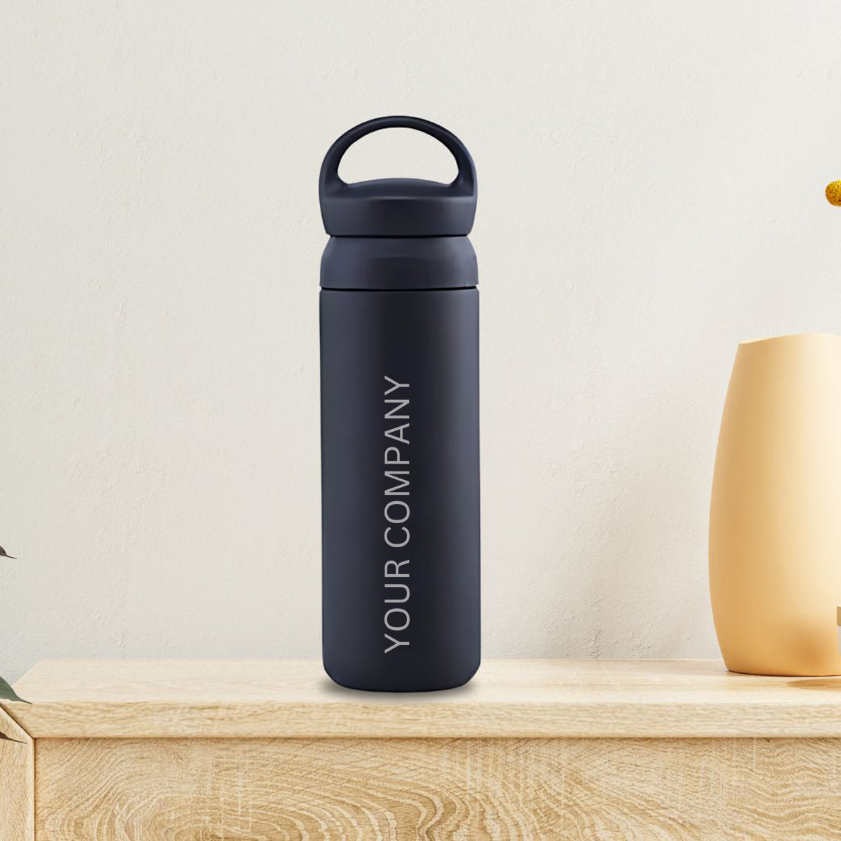 Custom Thermos Water Bottle 500ml - Black Stainless Steel Bottle With Your Company Name