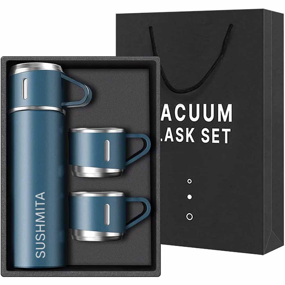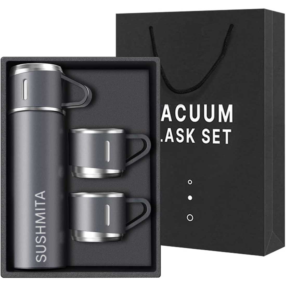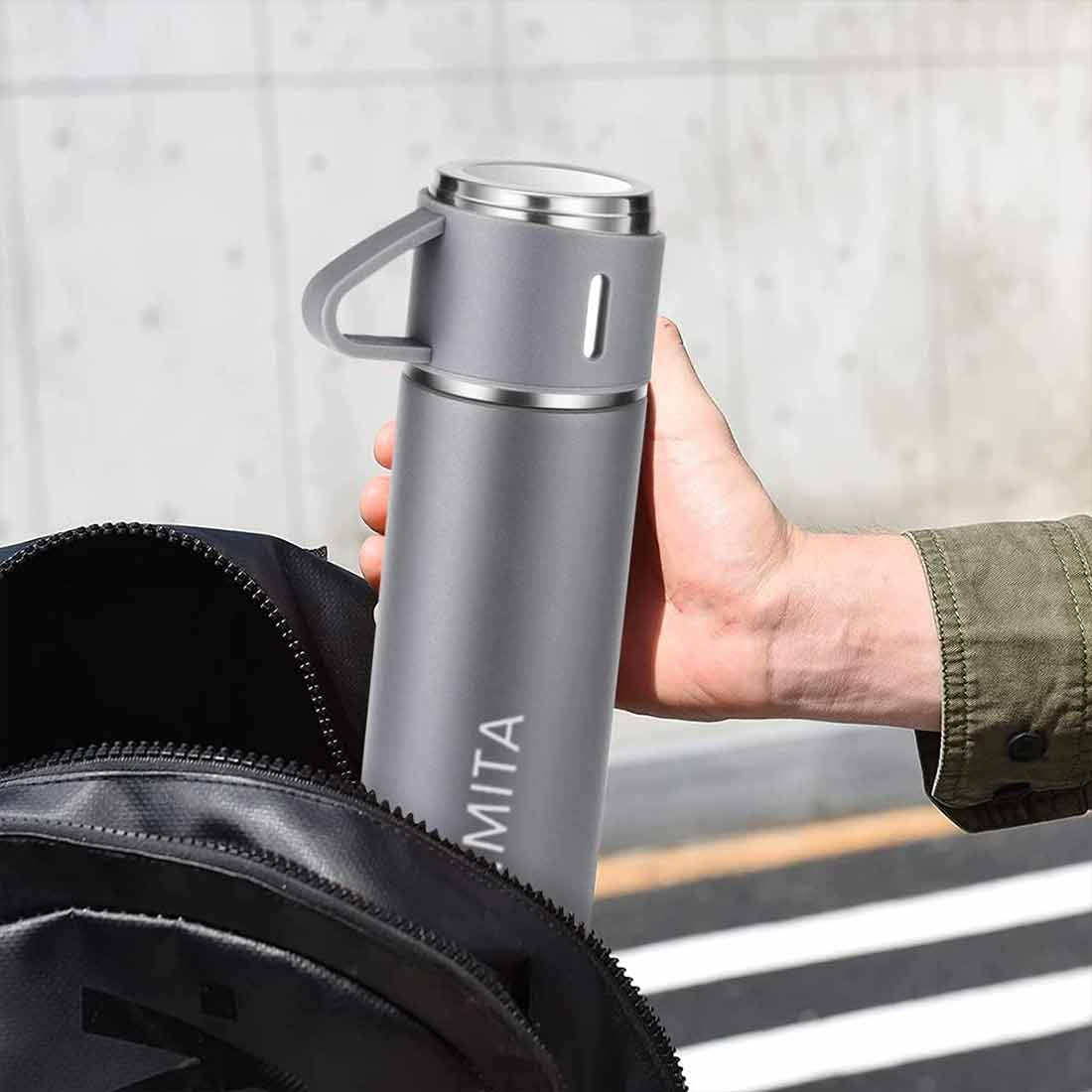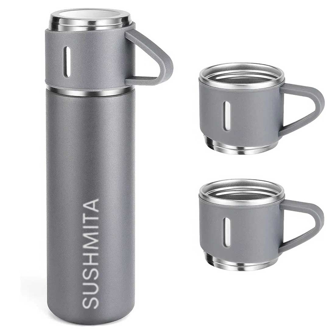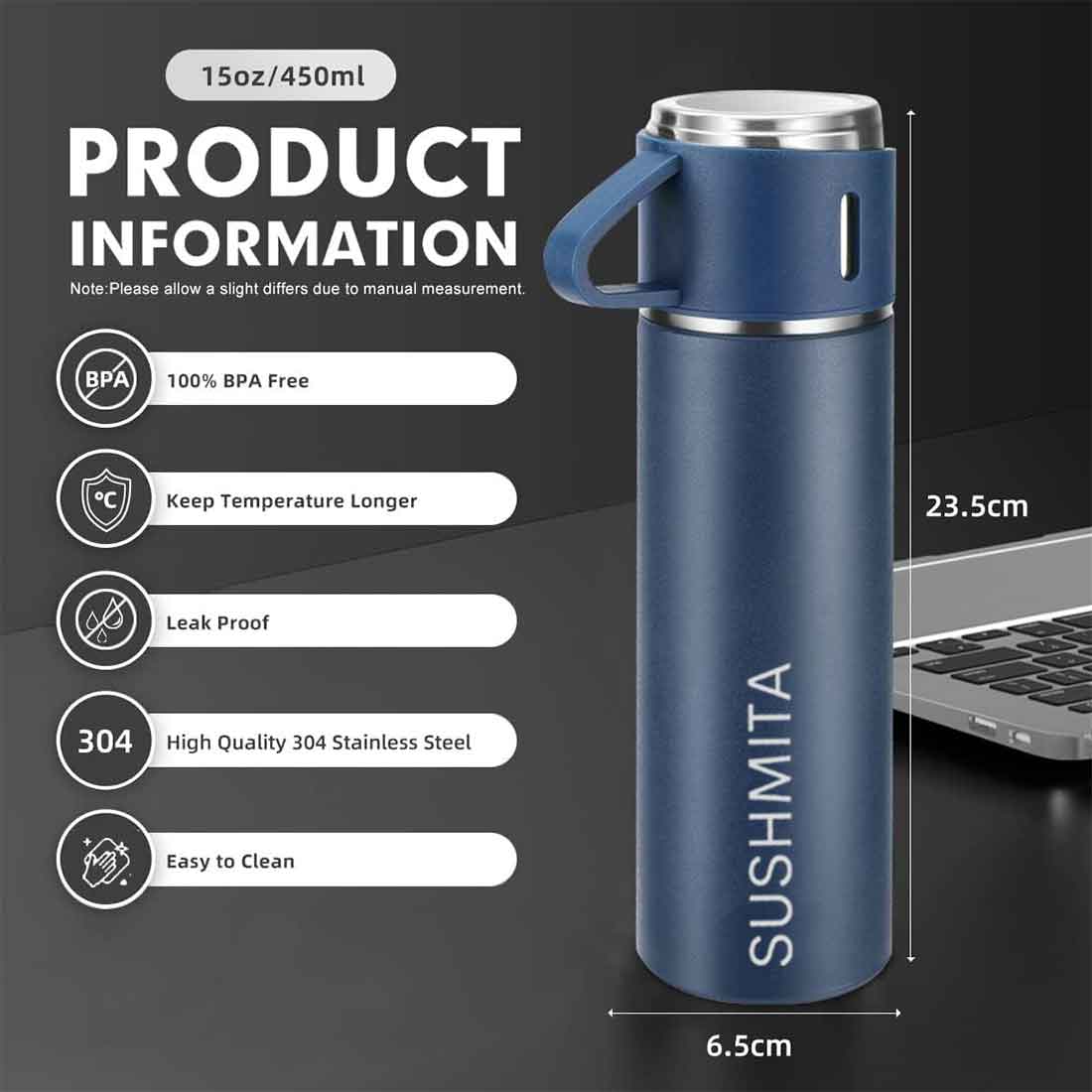 - Flask Size with Cup: 9.4-inch x 2.6-inch; Cup Size: 2.6-inch x 2.3-inch; Capacity: 500ml