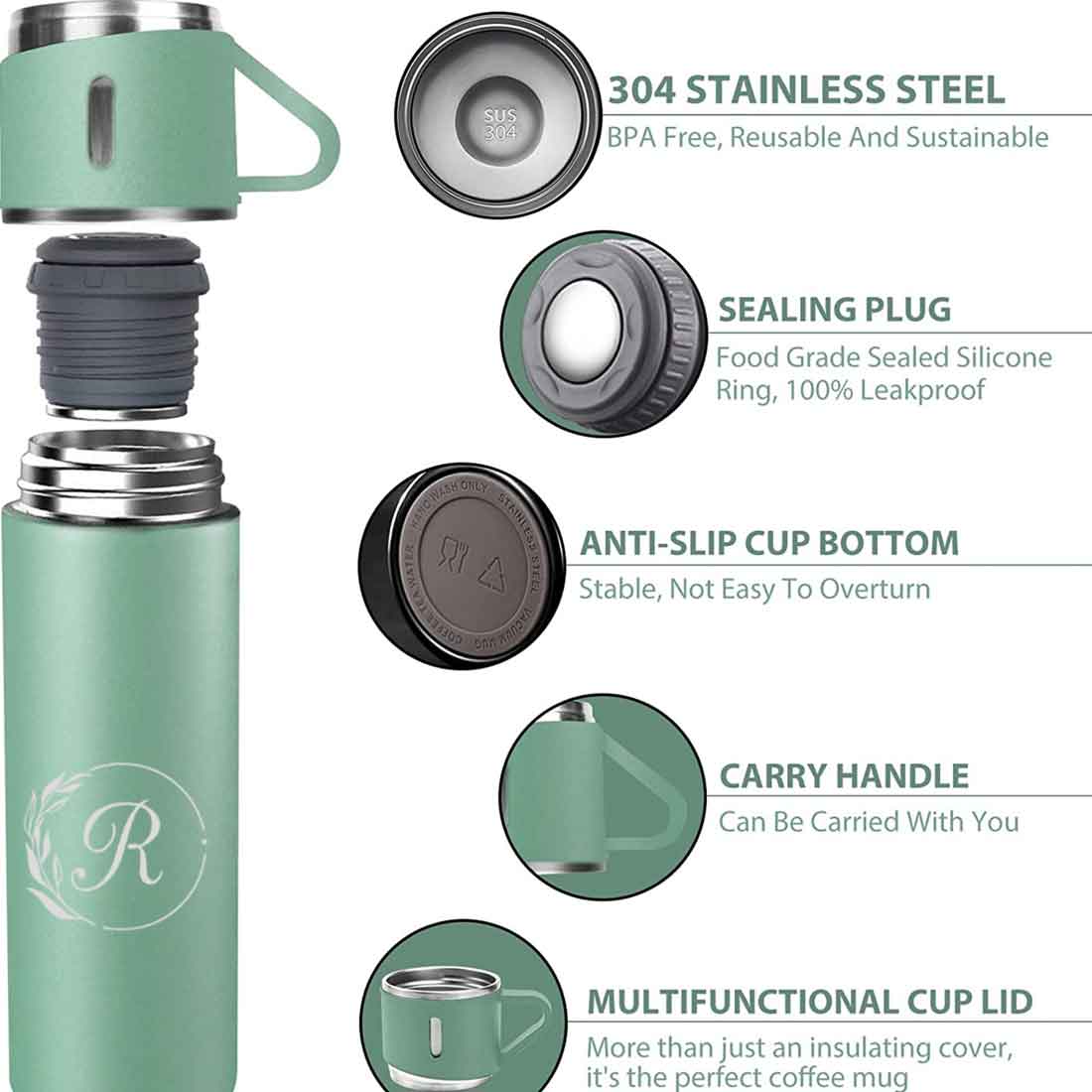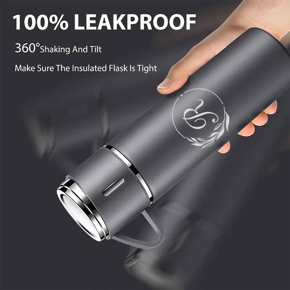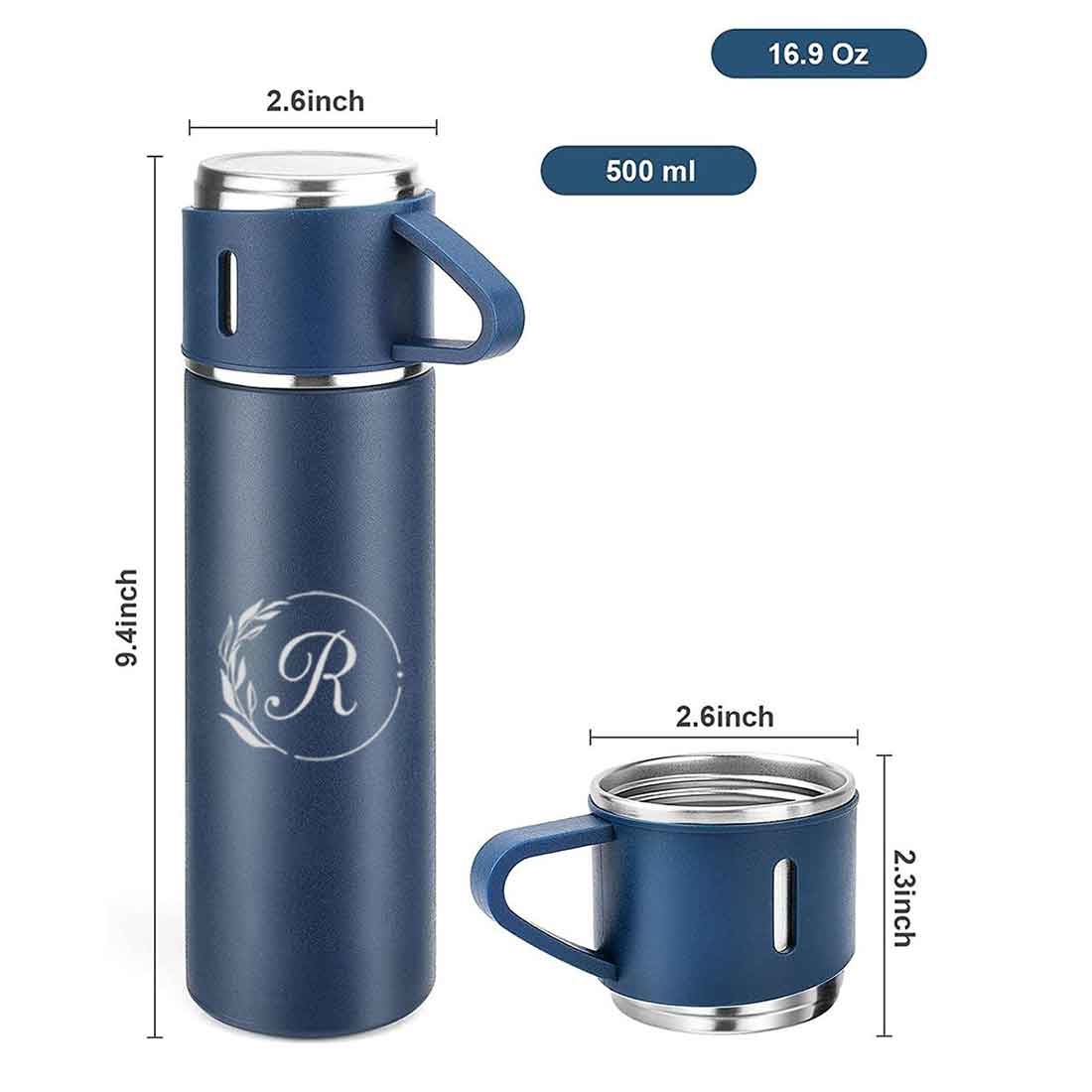 - Flask Size with Cup: 9.4-inch x 2.6-inch; Cup Size: 2.6-inch x 2.3-inch; Capacity: 500ml