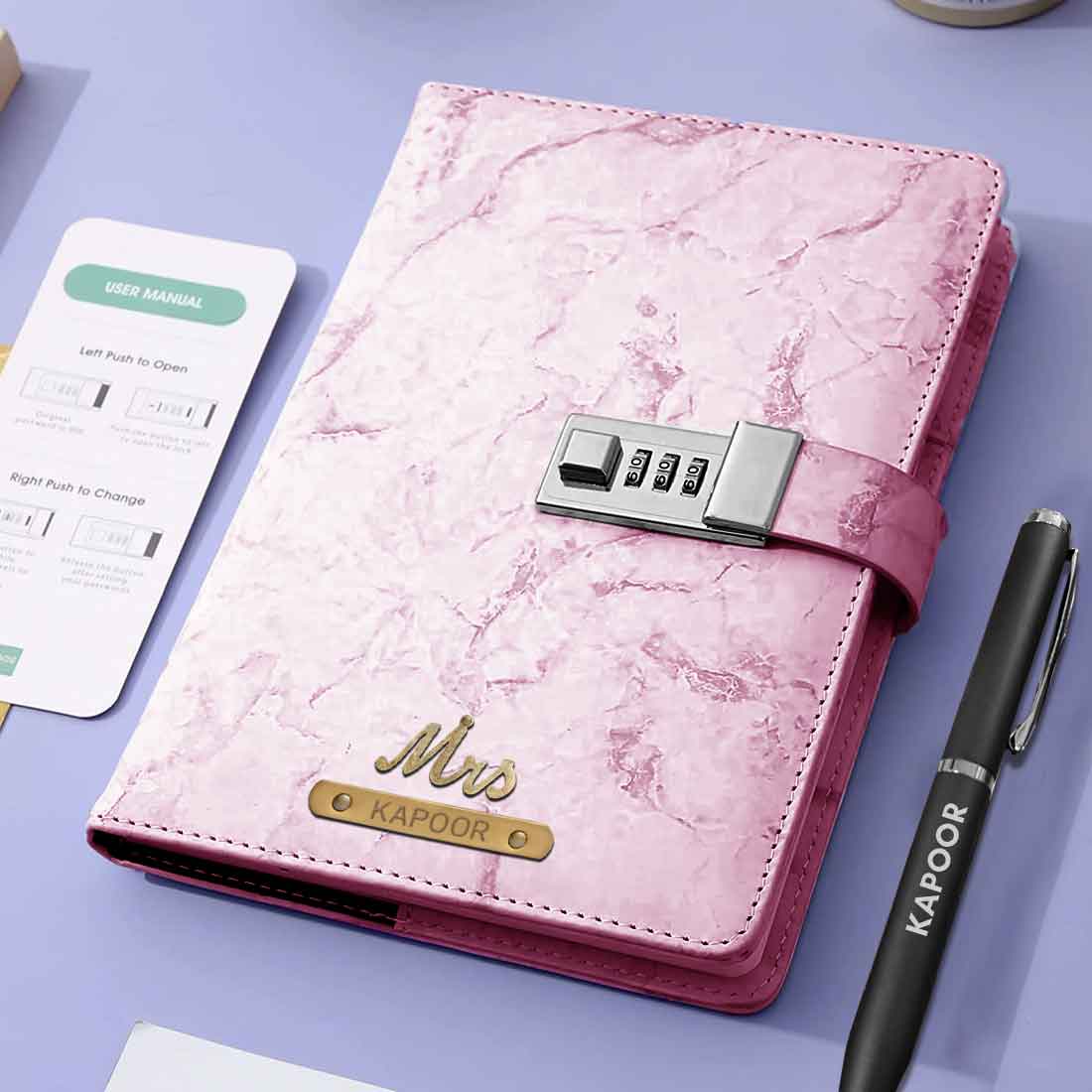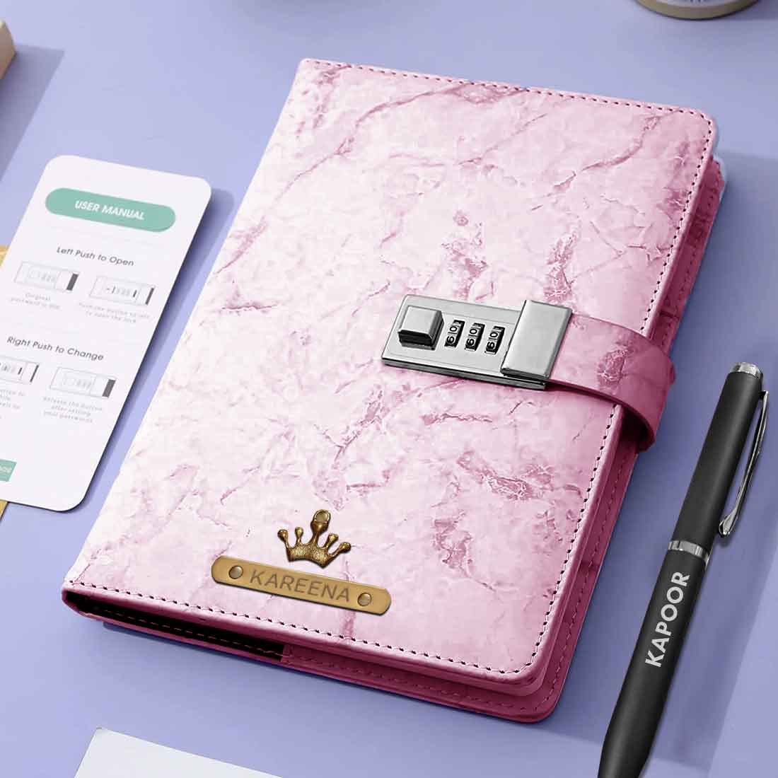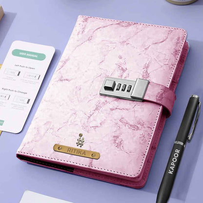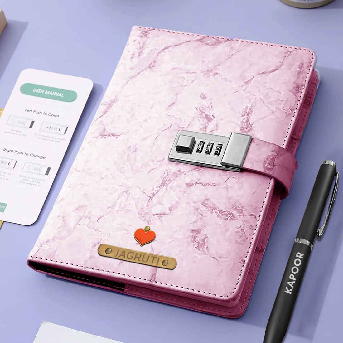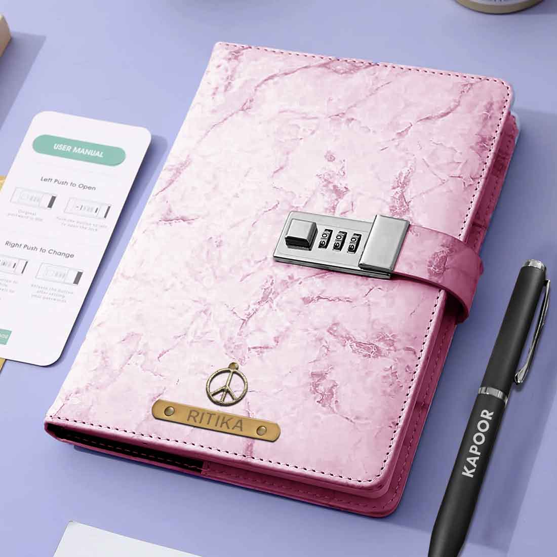 Nutcase brings you the ultimate blend of style and functionality with its premium personalized diaries with password lock. Designed with a chic marble finish, it features a 3-digit combination lock for added security. Compact at 22 x 14.5 cm, it’s ideal for portability. Customize it with your name, initials, and a charm of your choice, paired with a sleek black pen. The high-quality lined pages make it perfect for journaling, planning, or note-taking. A thoughtful gift for colleagues, bosses, or personal use, this diary is a versatile and elegant companion for every occasion.
