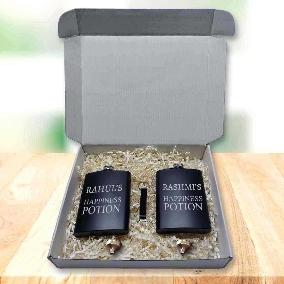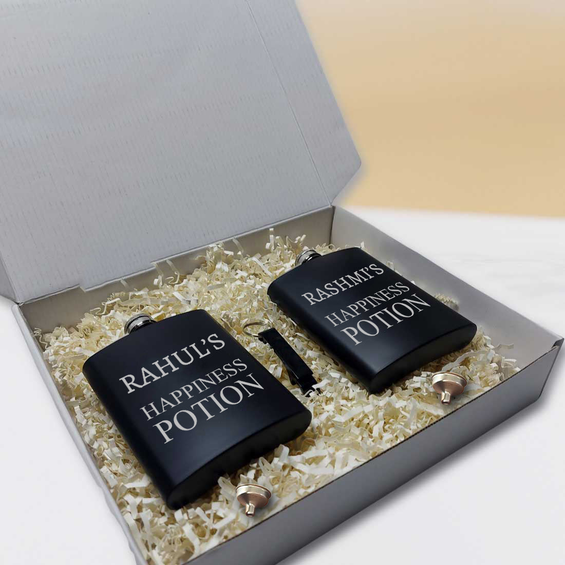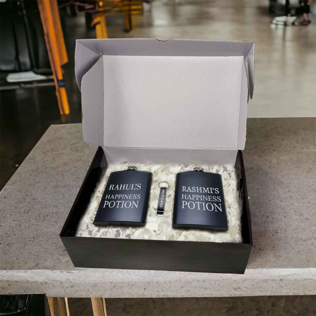 Customized Hip Flask Set of 2 with Opener Stainless Steel Gift Box for Couple